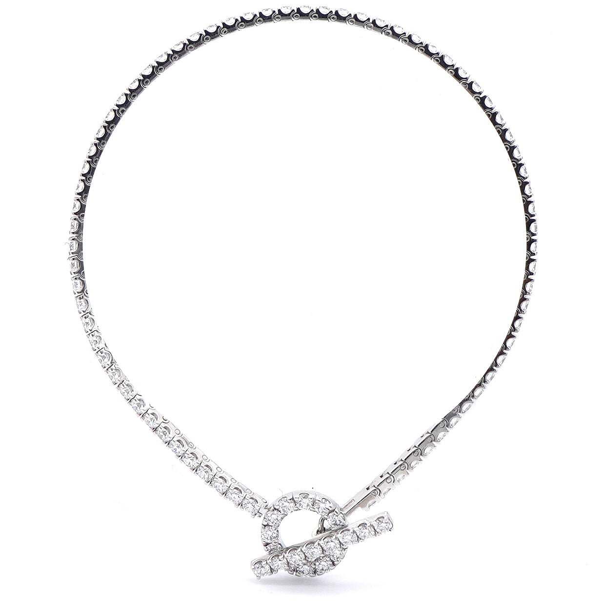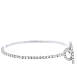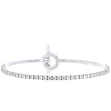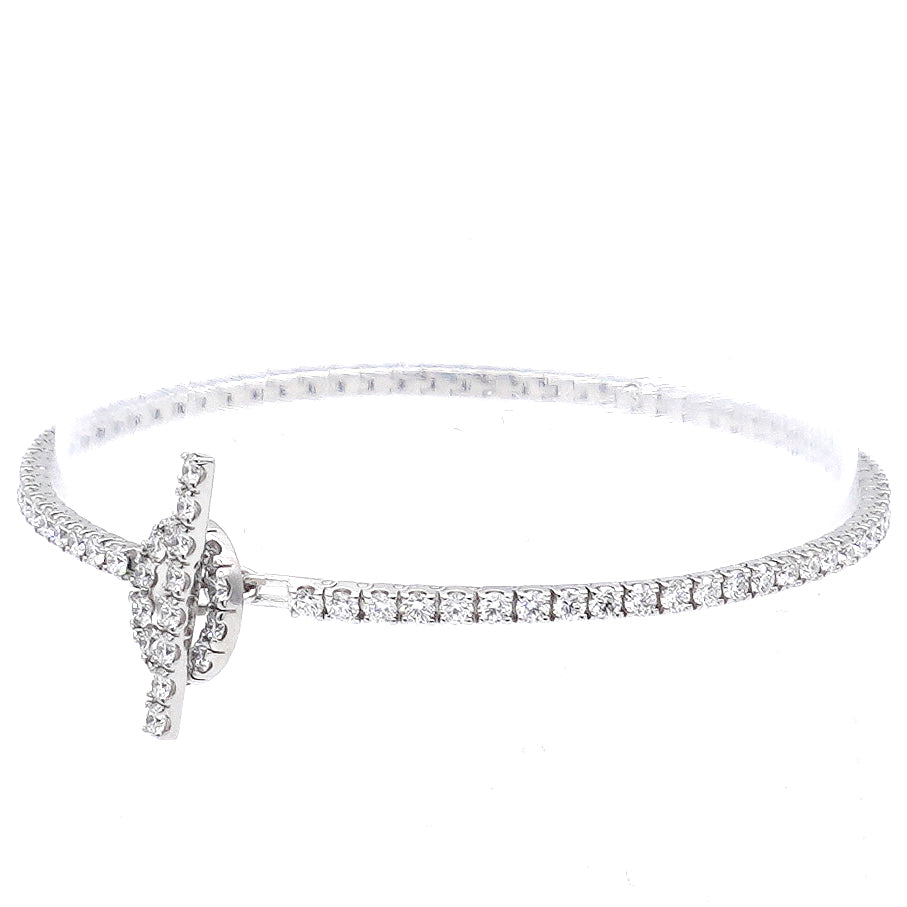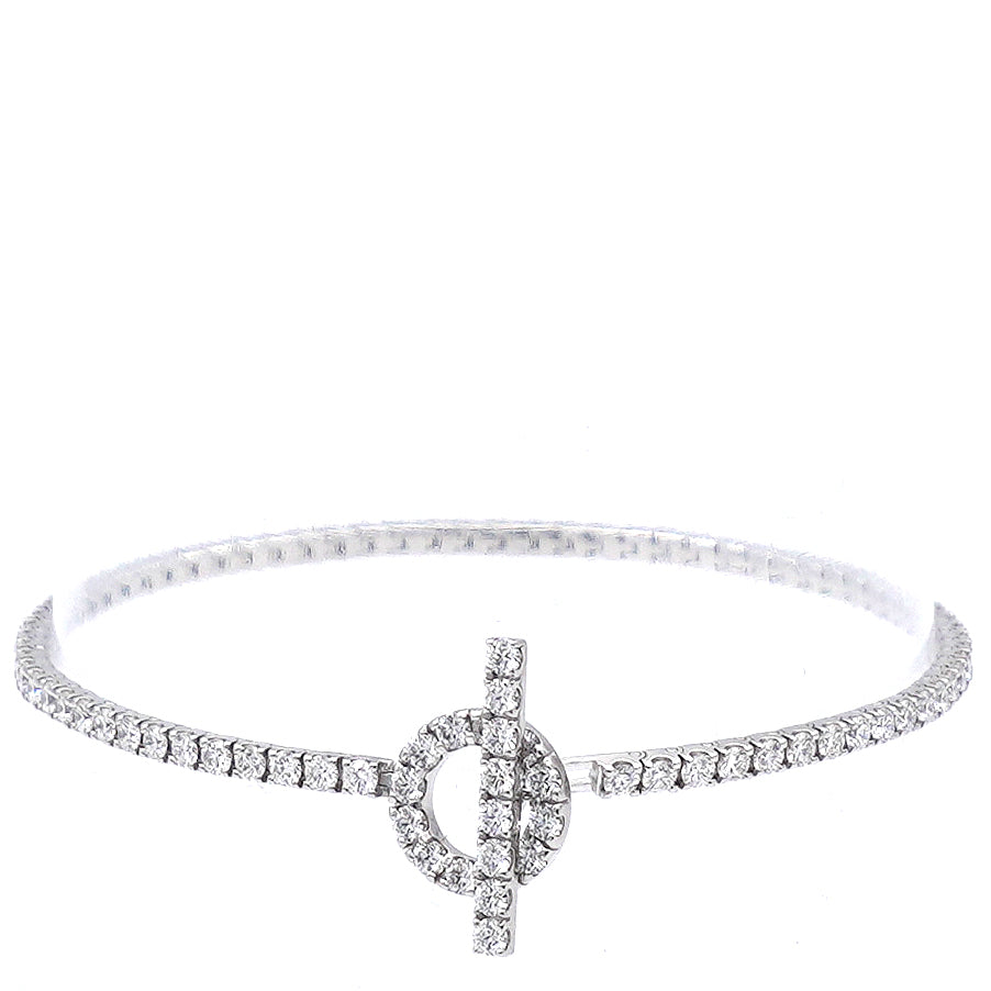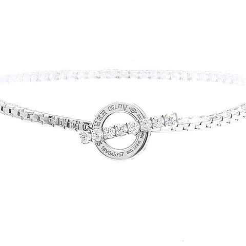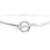 | The bracelet is crafted of 18 karat white gold and features a ring motif set with round brilliant cut diamonds, weighing approximately 2.49 total carat weight. |