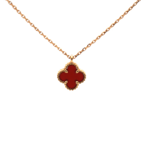 18K Yellow Gold Carnelian Vintage Alhambra Pendant Necklace