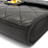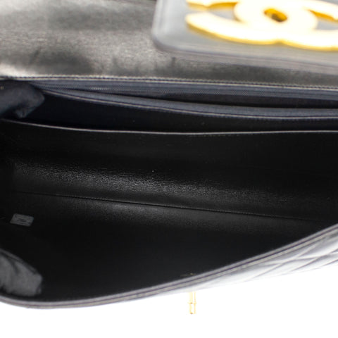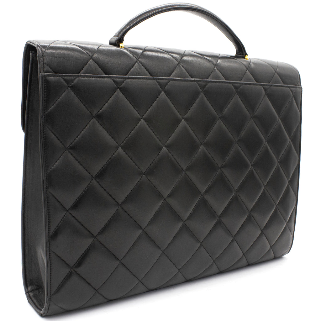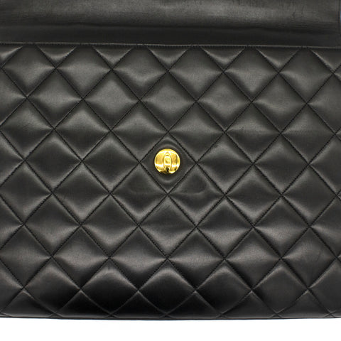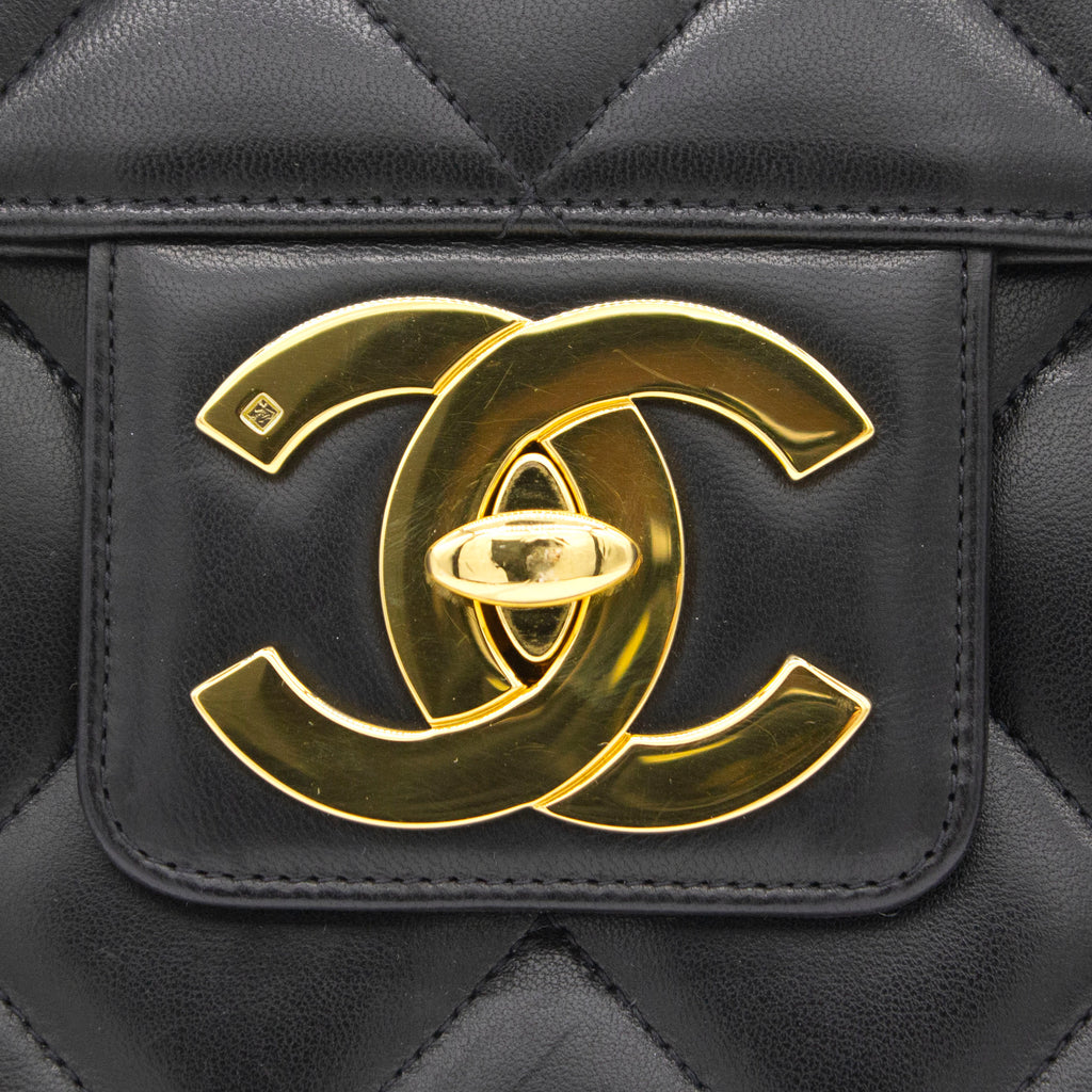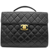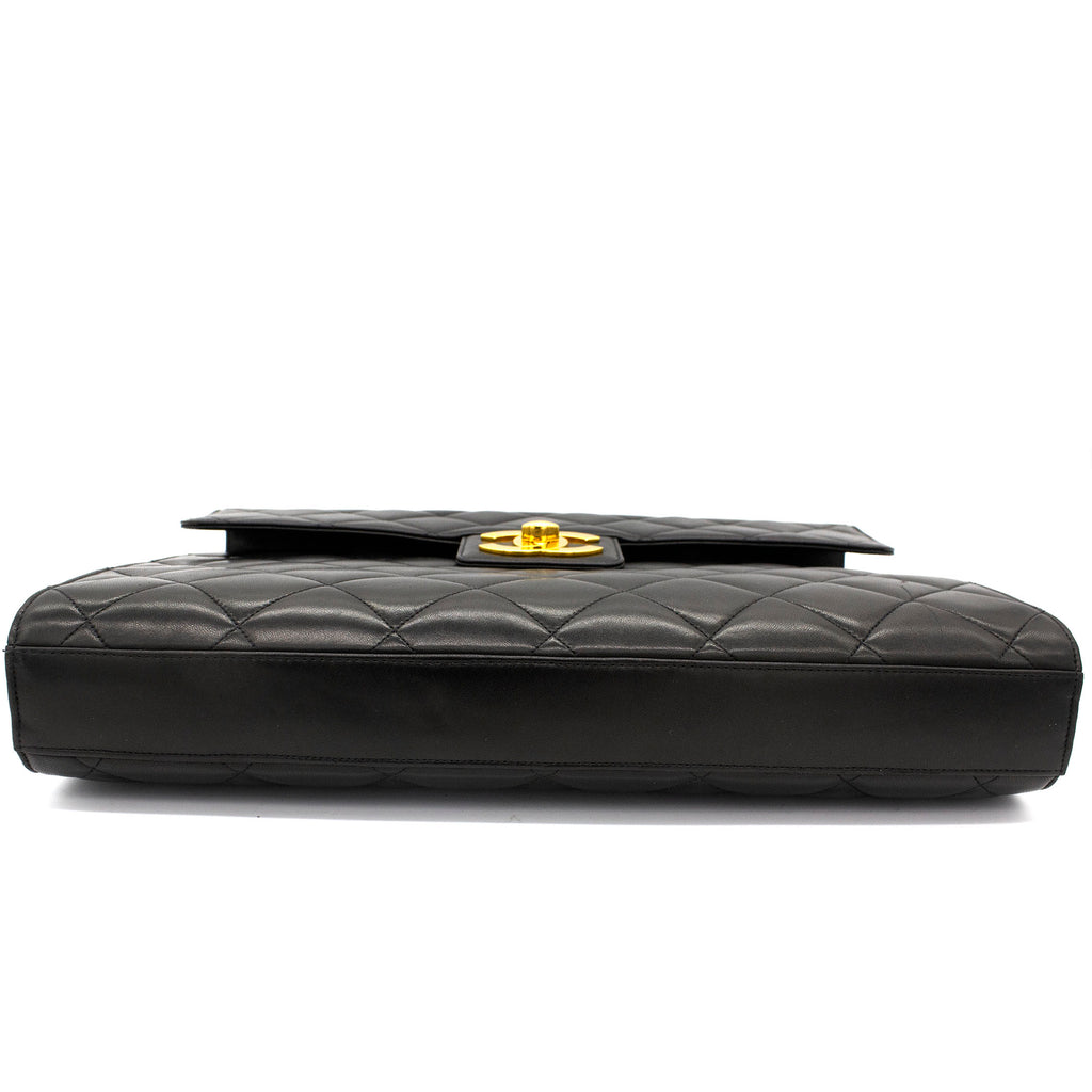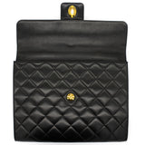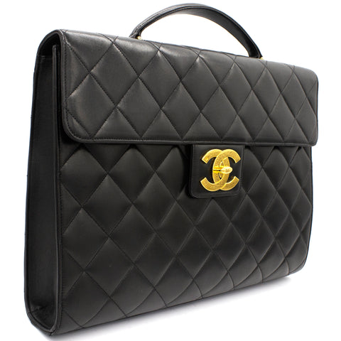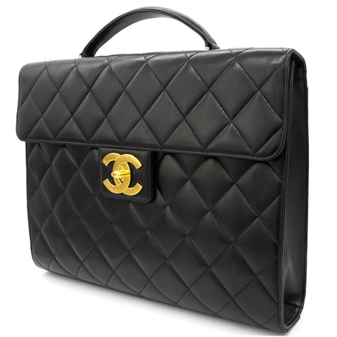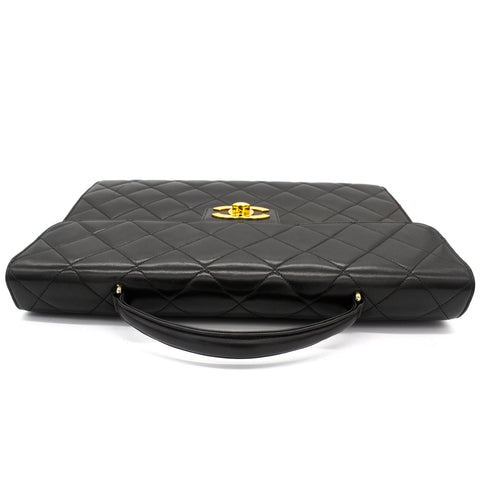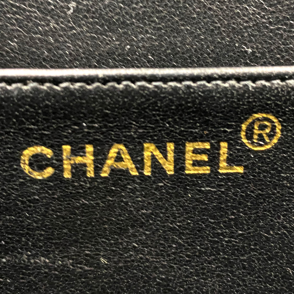 Exterior Material: Black lambskin exterior with gold-tone hardware, single top handle and signature interlocking CC turn-lock fastening. Interior Material: Black leather lining with one main compartment, one interior zipped pocket and one interior slip pocket. Accessories: Chanel Original Dust Bag; Chanel Authentic Card Serial Number: 3780564 Bought Year: 1995 |