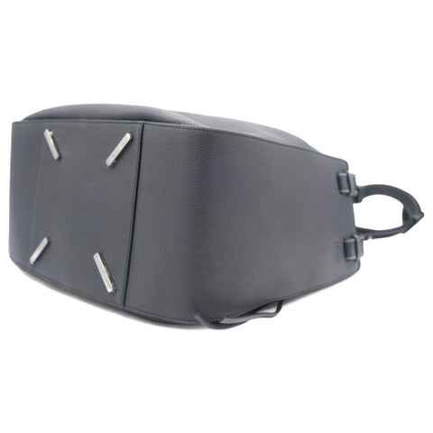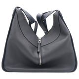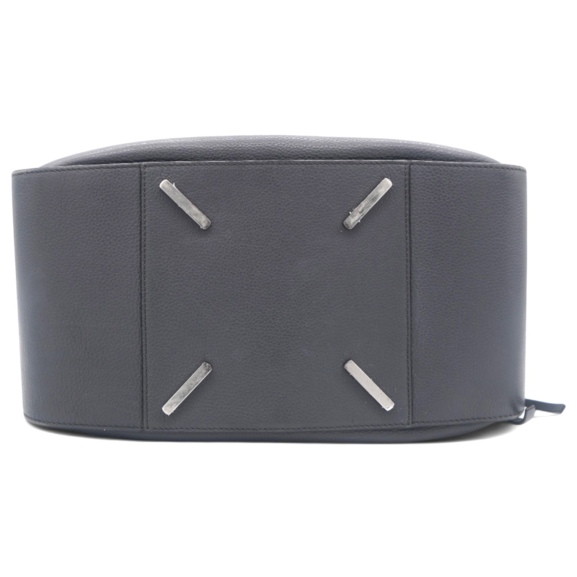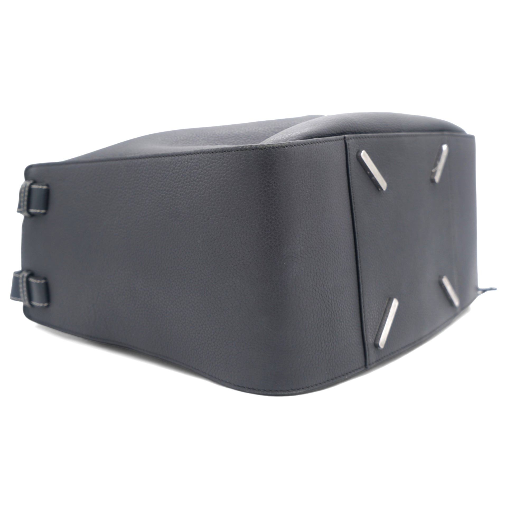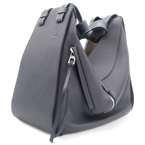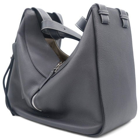 Loewe leather shoulder bag. Interior hook closure. Twin top handles, detachable and adjustable shoulder strap, contrast stitching, zipped sides, silver-toned hardware, external zip pocket and two internal slip pockets, embossed Anagram, herringbone lining.