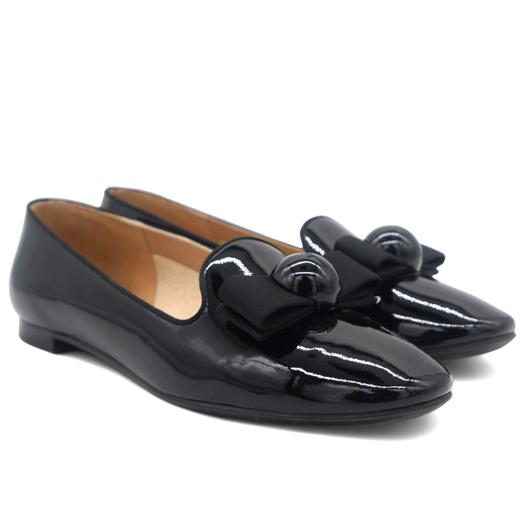 Black Patent Leather Bow Smoking Slippers Pumps 7/37.5
