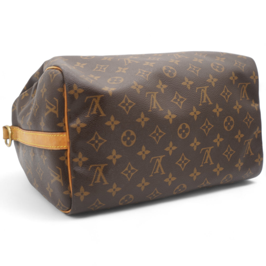 Every feature of this Speedy is iconic: the unique shape, the leather handles, the Monogram canvas. No wonder it has achieved cult status the world over. Designed for travelers in 1930 (the name is a nod to the era’s rapid transit), with a strap for casual cross-body wear, today’s Speedy 30 is a perfect city bag – supple, lightweight and forever in style
