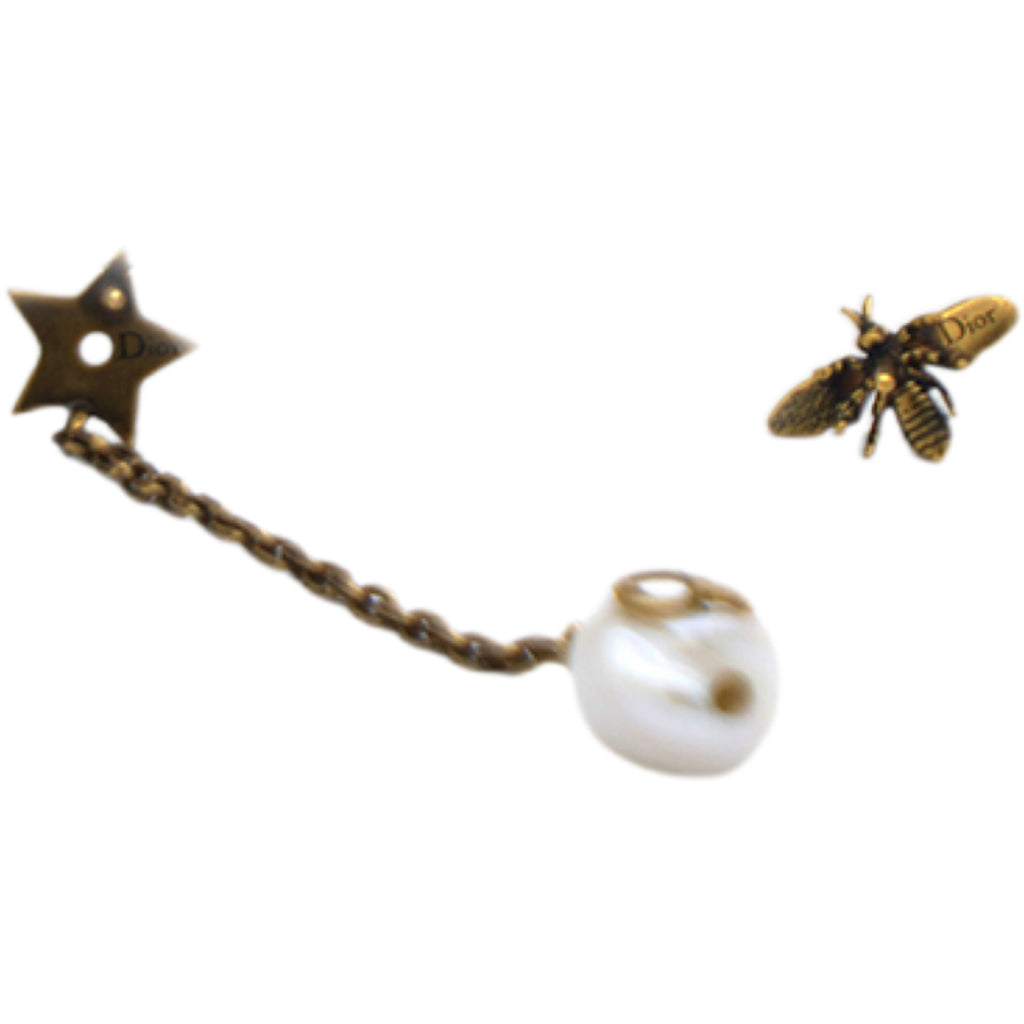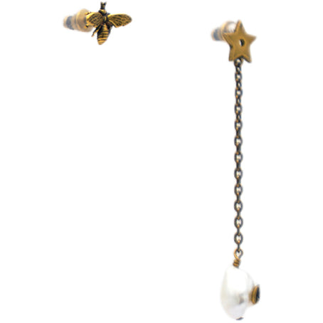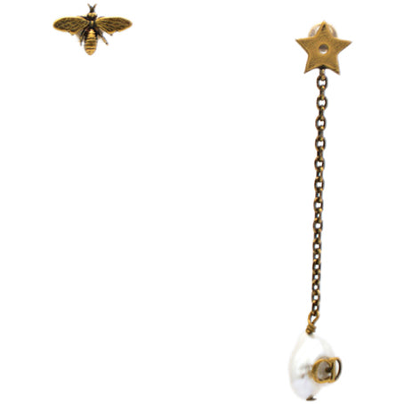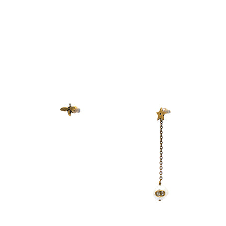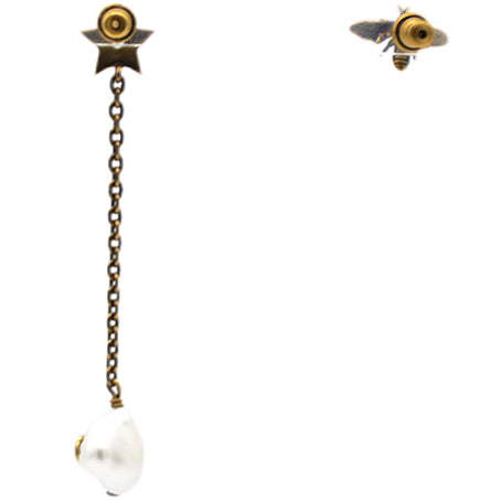 | This is a charming pair of CHRISTIAN DIOR Metal Pearl Bee Star CD Drop Chain Earrings in aged gold.These earrings are in gold star with Christian Dior logo hanging. |