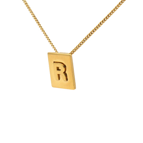 | The CÉLINE Alphabet R Necklace is a stylish piece crafted from brass with a gold finish. Featuring a bold "R" pendant, it combines elegance with a modern, minimalist design, perfect for adding a touch of luxury to any outfit. |