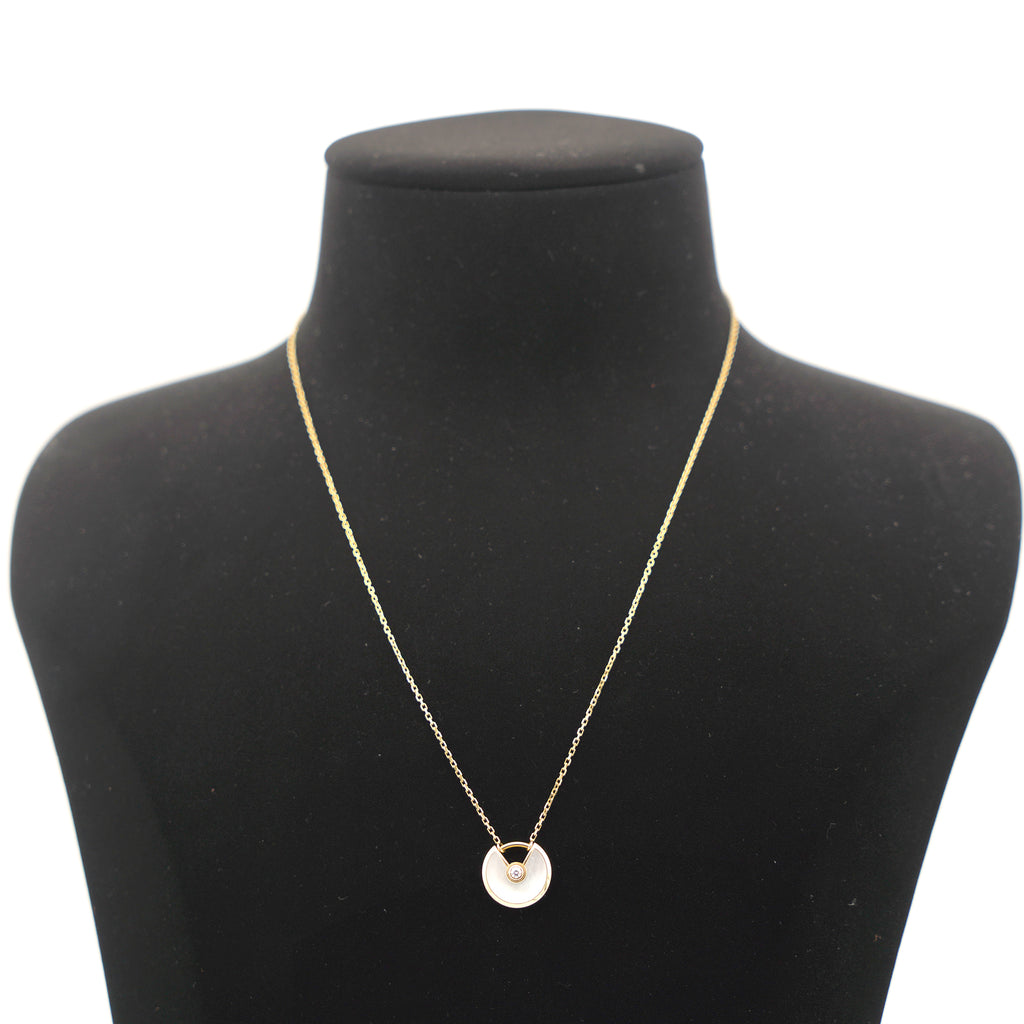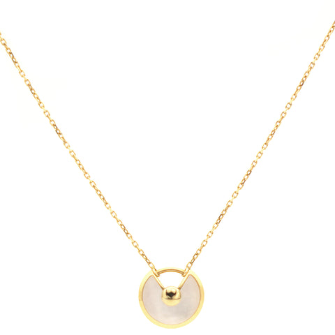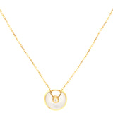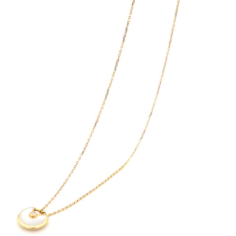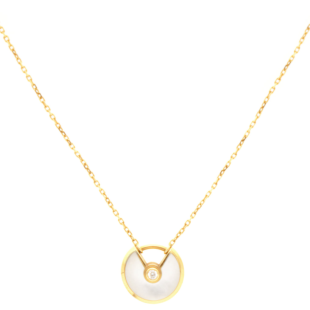 | A magnificent offering from Cartier's Amulette de Cartier line. The necklace comes crafted from 18k yellow gold and it has the signature motif in Mother of Pearl highlighted by a shimmering diamond. Smoothly finished, the desirable creation deserves to be on you |