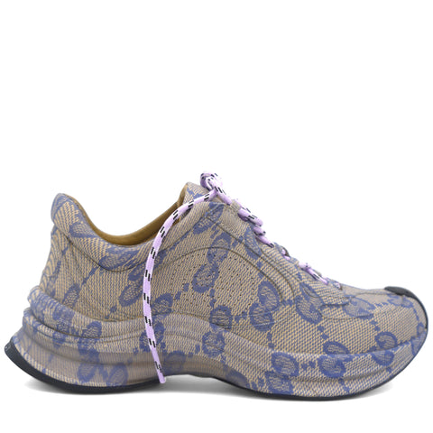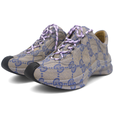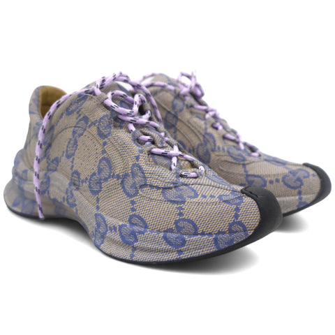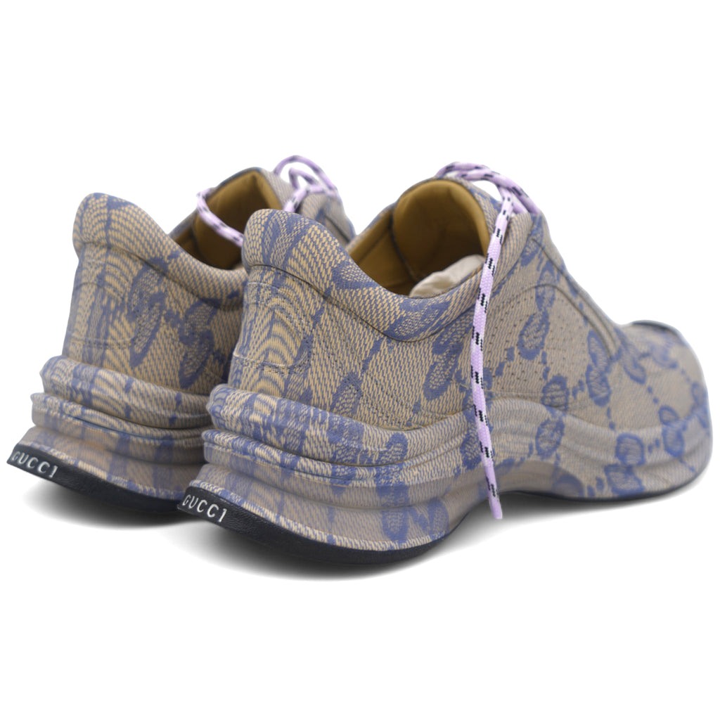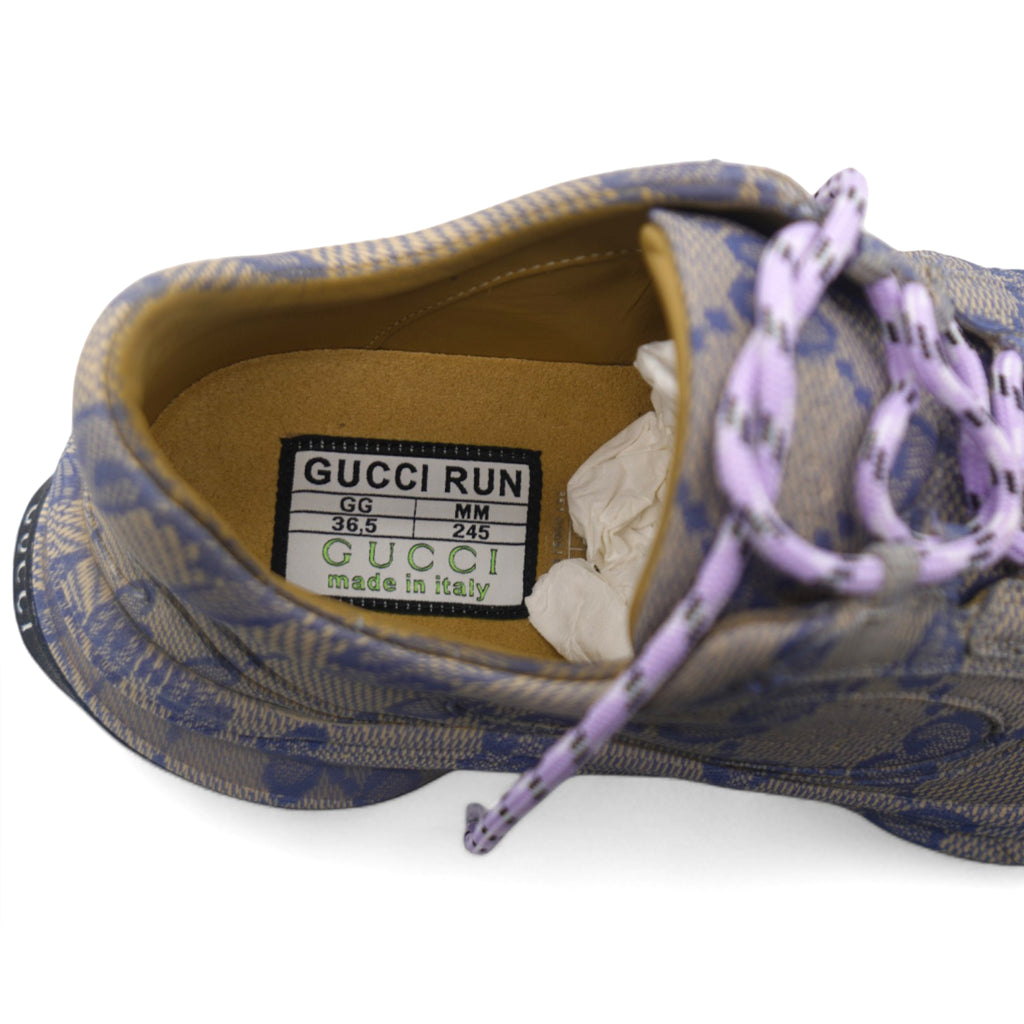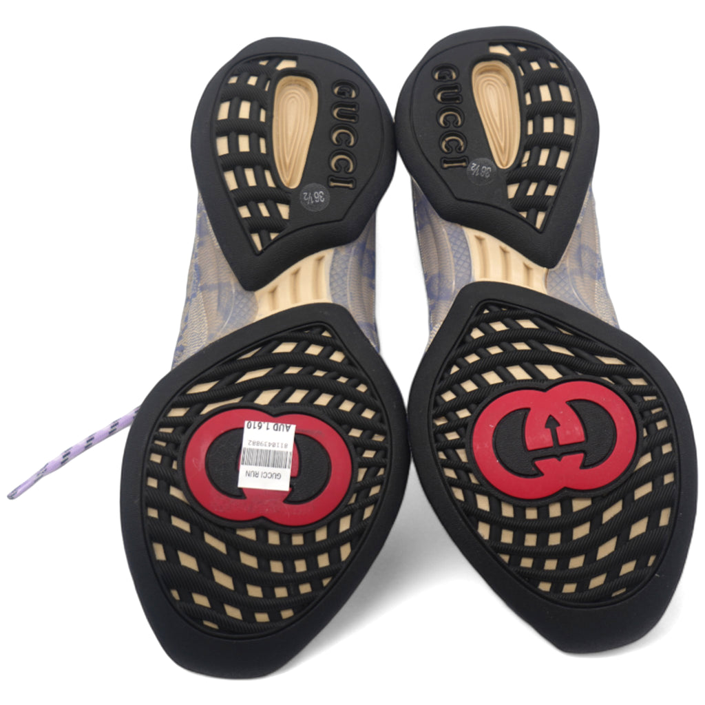 Beige/Blue GG Printed Leather Run Sneakers 36.5