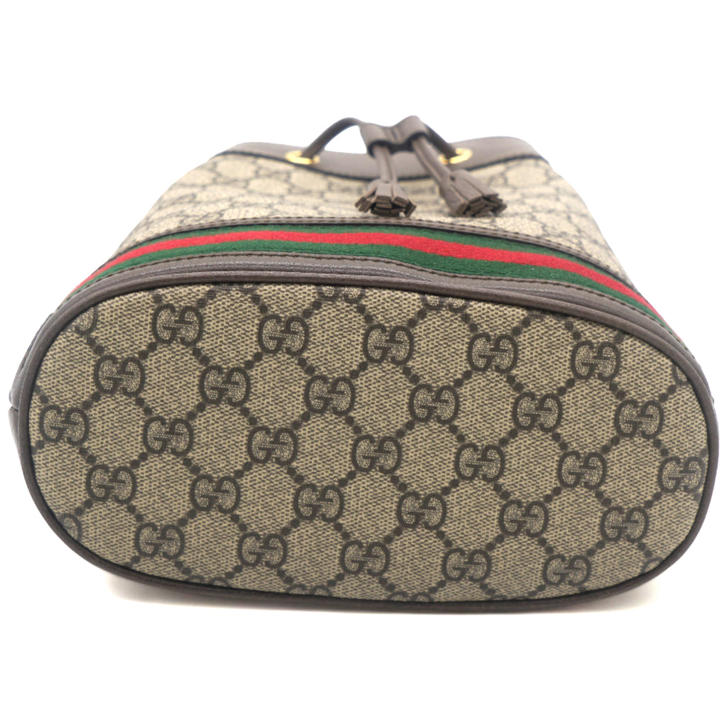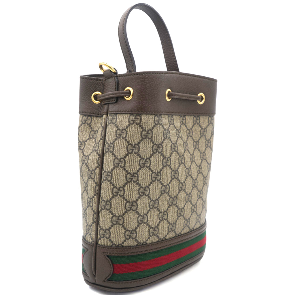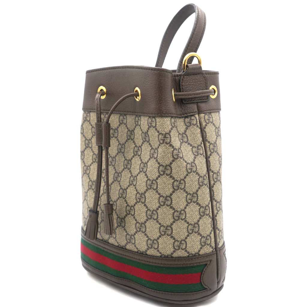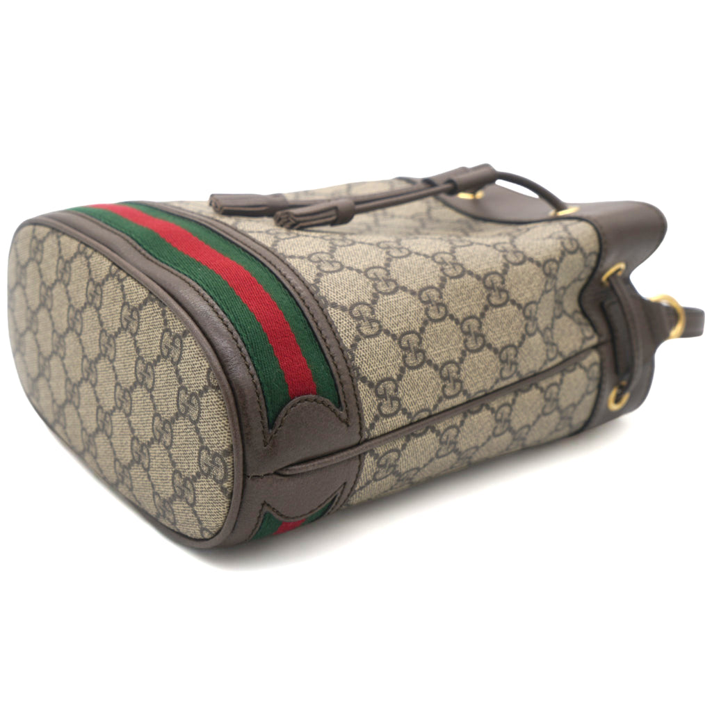| Rendered in GG Supreme canvas and leather, the Ophidia bucket bag features the Web detail on the exterior for a signature touch. It opens to a well-sized Alcantara interior for housing your basic essentials. The bag suspends from a shoulder sling just so you can parade it in style! |