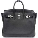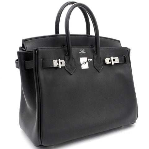 | A bag that has become a hallmark of luxury and class, the Birkin from Hermes is one of the most coveted bags in the world. Custom-made on the suggestions of Jane Birkin, hence the namesake, this bag is aimed to fit the wants of the fast-paced life of modern women. Timeless design coupled with rich craftsmanship, the body of this Birkin 25 bag is crafted from swift leather in a Hermes classic black color. Its foldover top is secured by palladium-plated turn-lock closure which is accompanied by a padlock and a dangling key safe within a leather clochette. The interior of the bag has leather lining and is equipped with a pocket for storing little essentials. Complete with dual-rolled handles and studs at the bottom, this bag is an investment that will last you for years. |