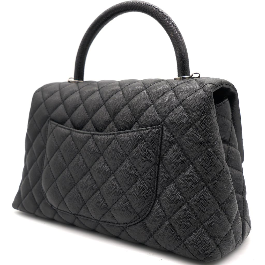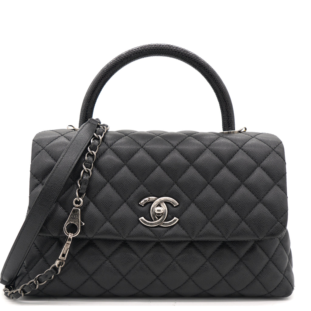 | Exhibiting a contemporary design, this bag from the house of Chanel will be an instant hit among fashionistas. Add a touch of glam to your look with this black bag. This richly crafted trendy Caviar Leather handbag is designed to complement your sophisticated personality. |