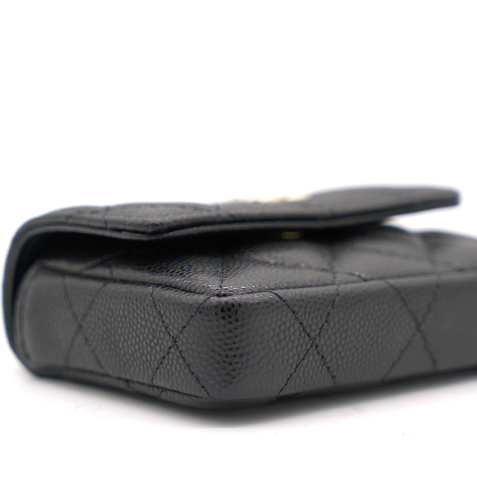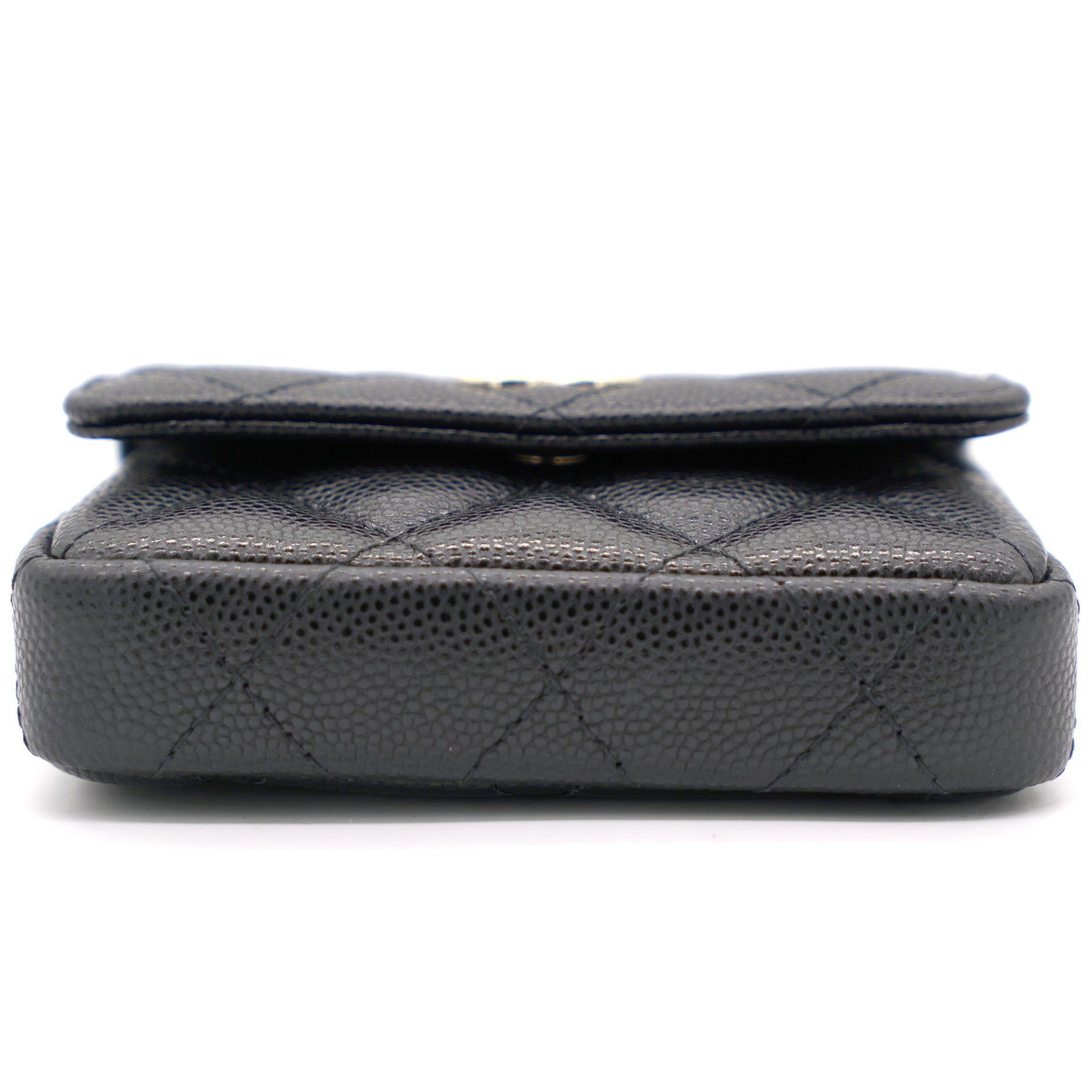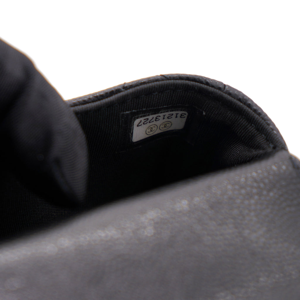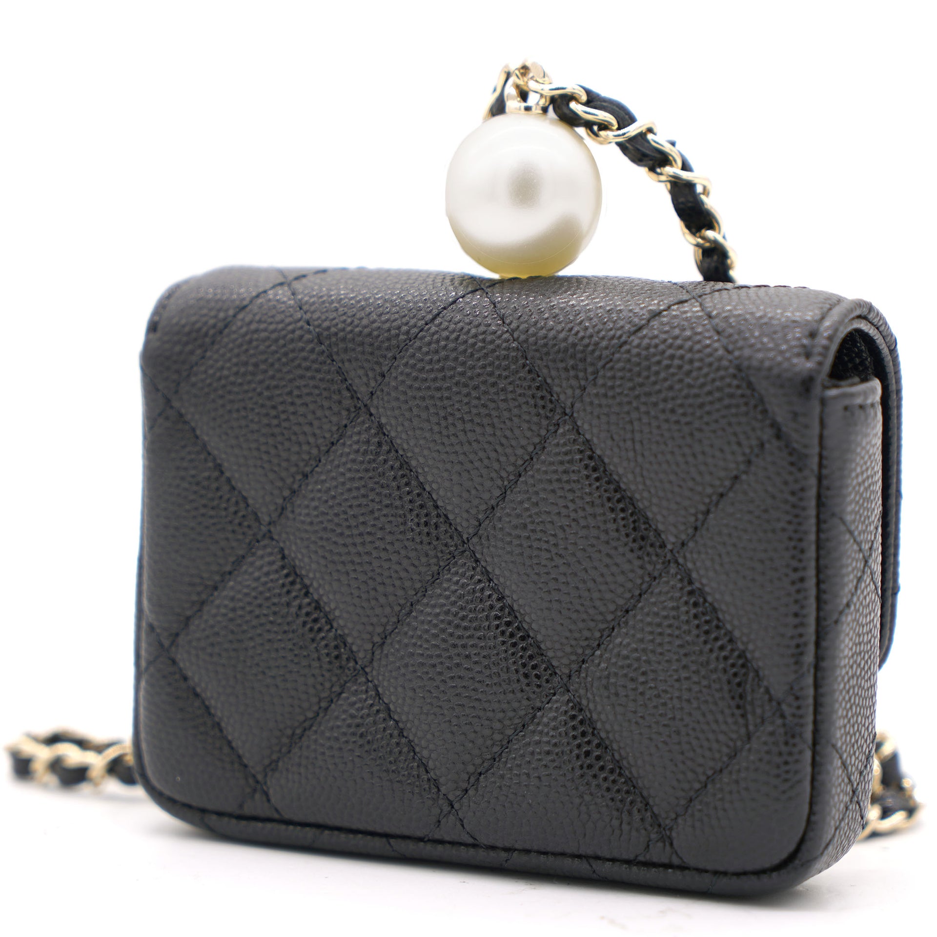 | This cardholder from Chanel is absolutely gorgeous to look at! Crafted from caviar leather in black, it features the signature quilts, the signature CC logo on the front flap, beautiful pearl with CC logo and an intertwined chain link for you to parade it in style. Organize your essentials in accordion style with this beautiful creation. |