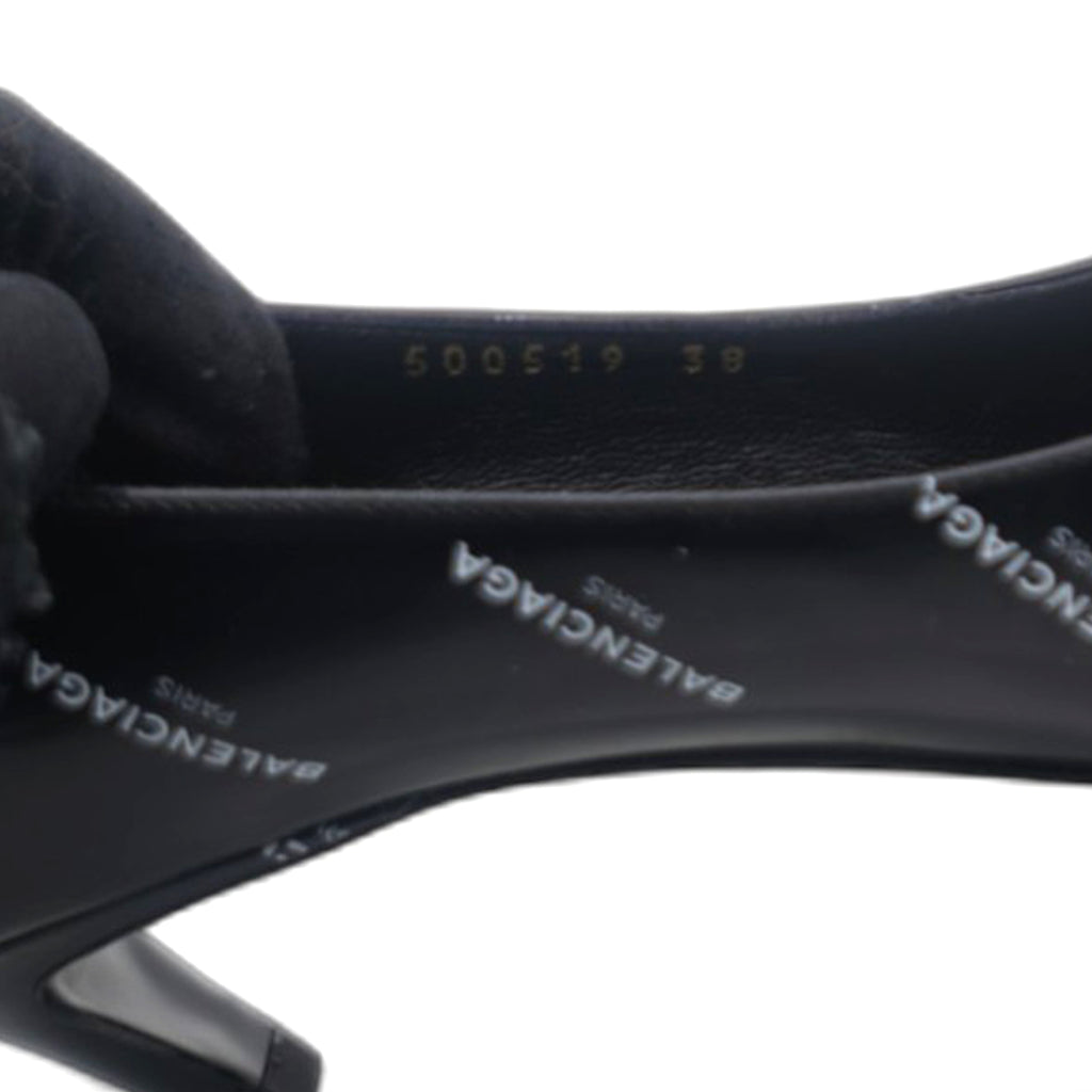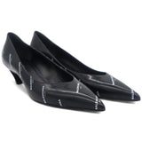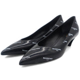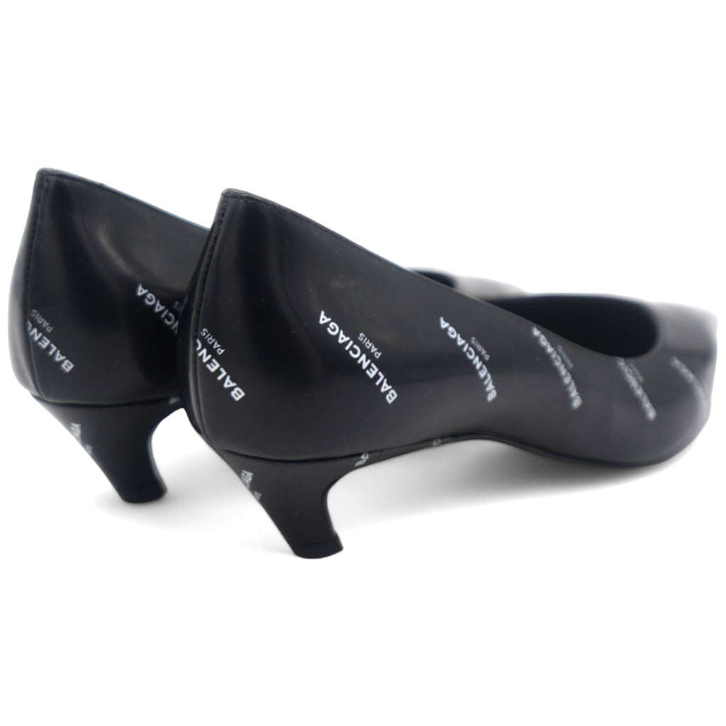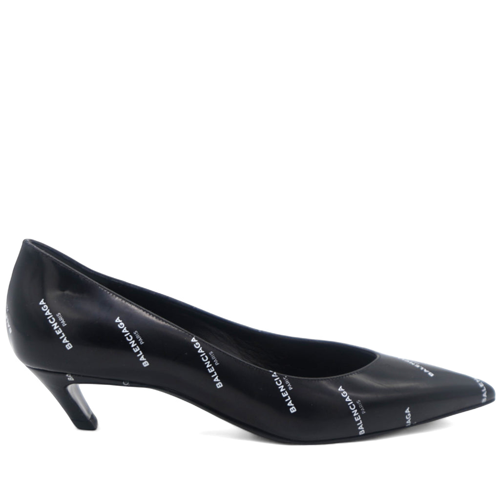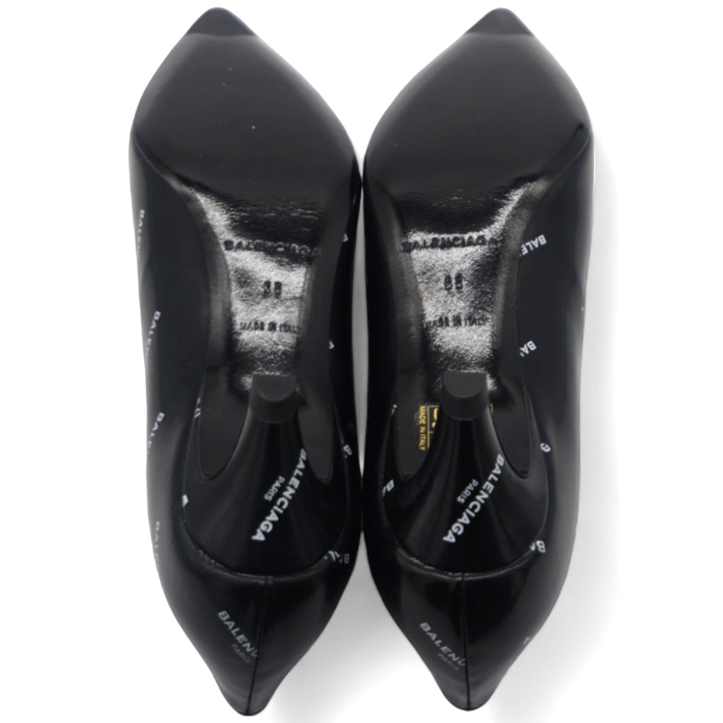 | Balenciaga introduced these pumps to delight the tastes of all fashion-forward ladies. These pointed-toe pumps are designed with the signature slanting heels and rendered in leather with gold-tone logo prints all over. |