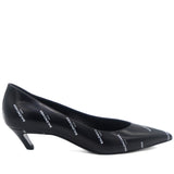 Black/Gold Logo Printed Leather Talon Slash Heel Pointed Toe Pumps 38