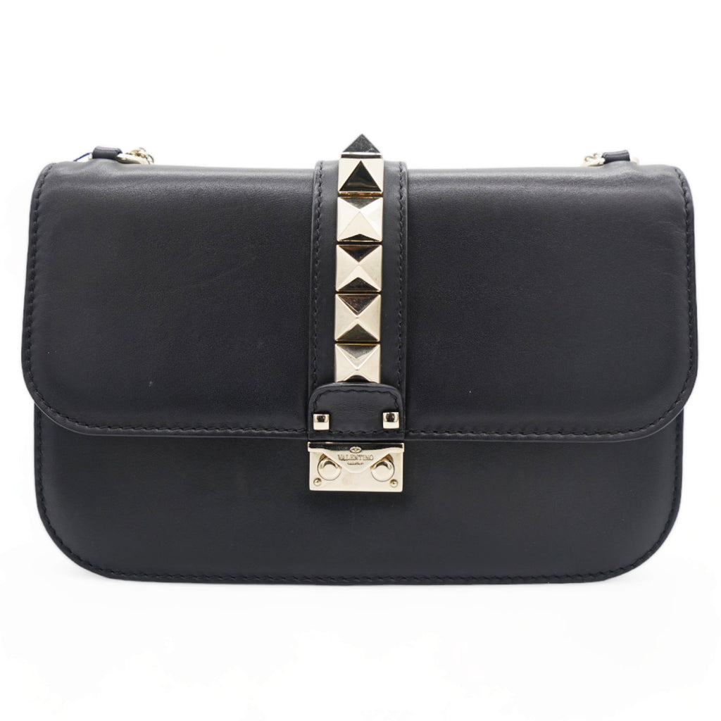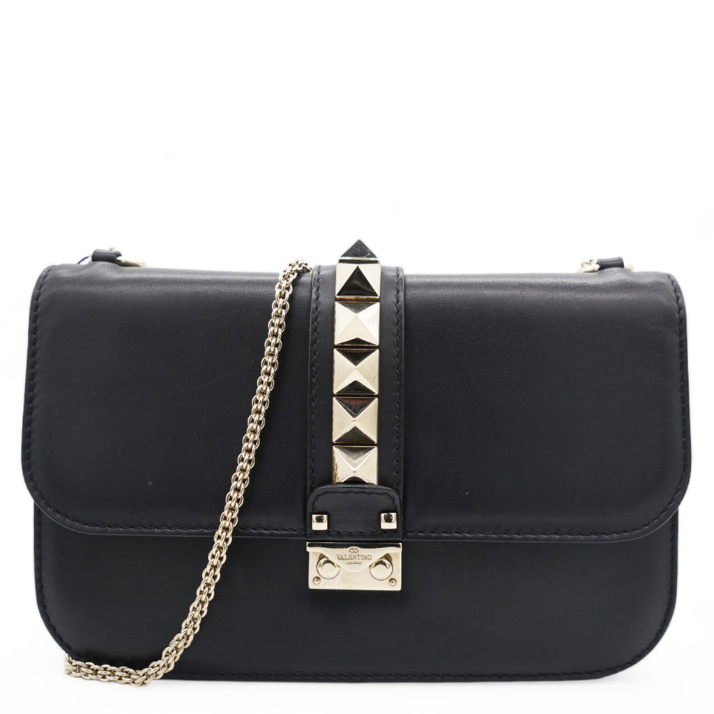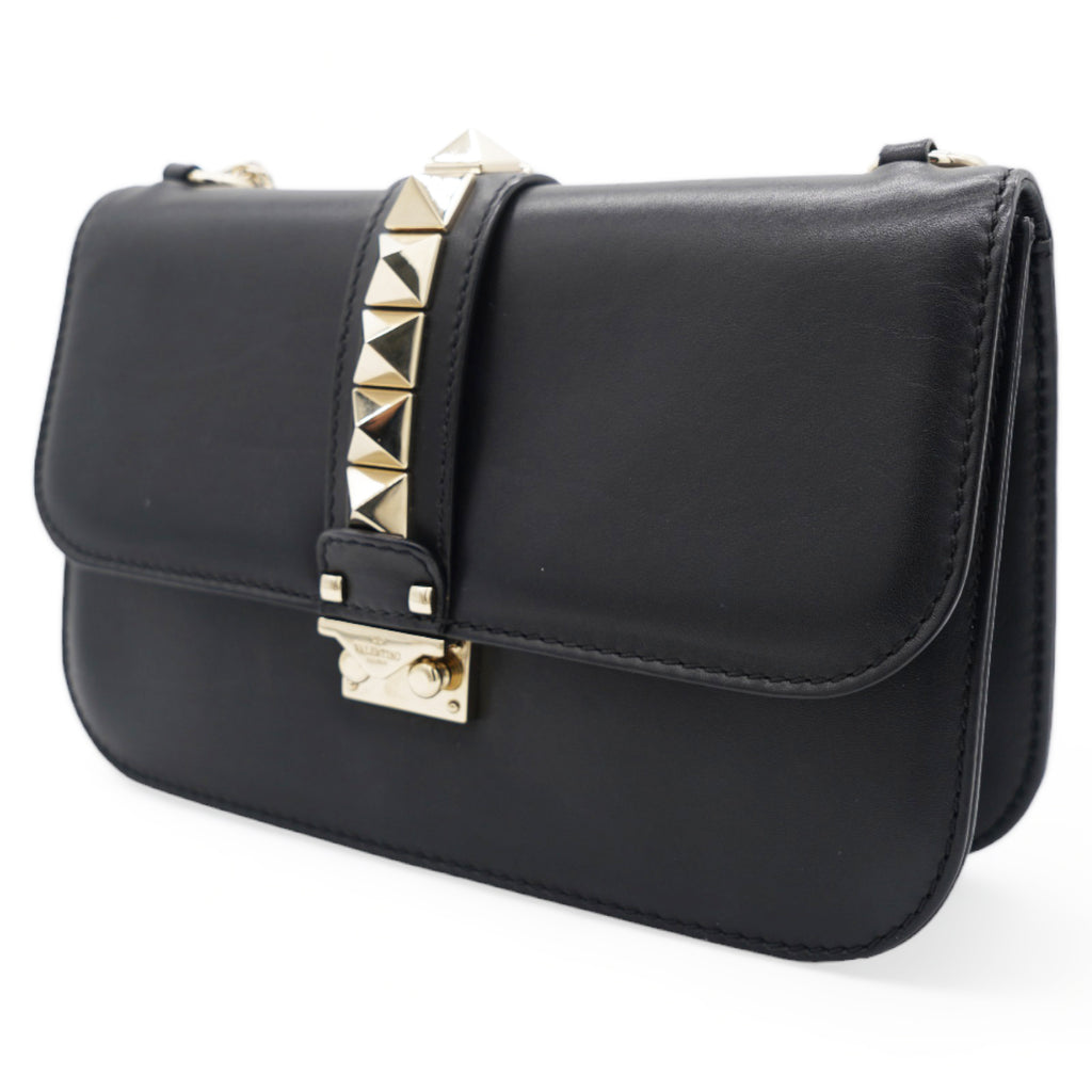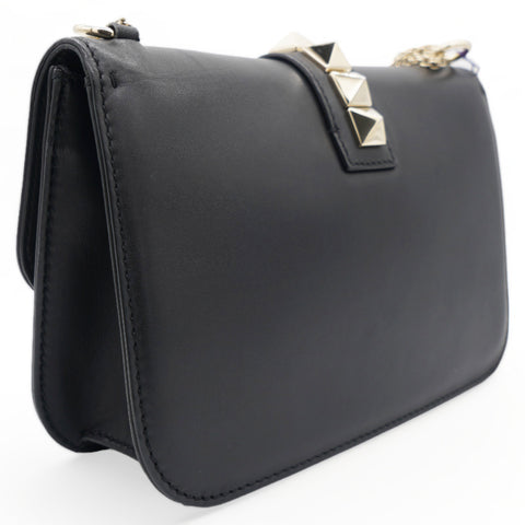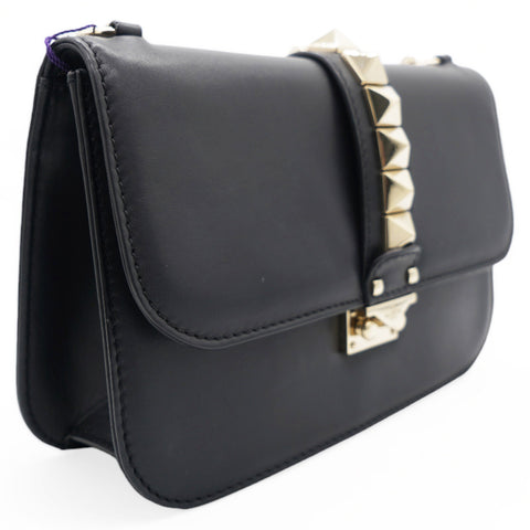 Black Leather Medium Rockstud Glam Lock Flap Bag