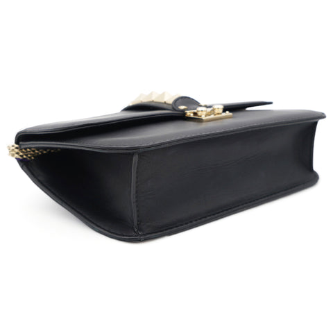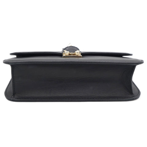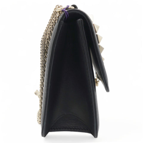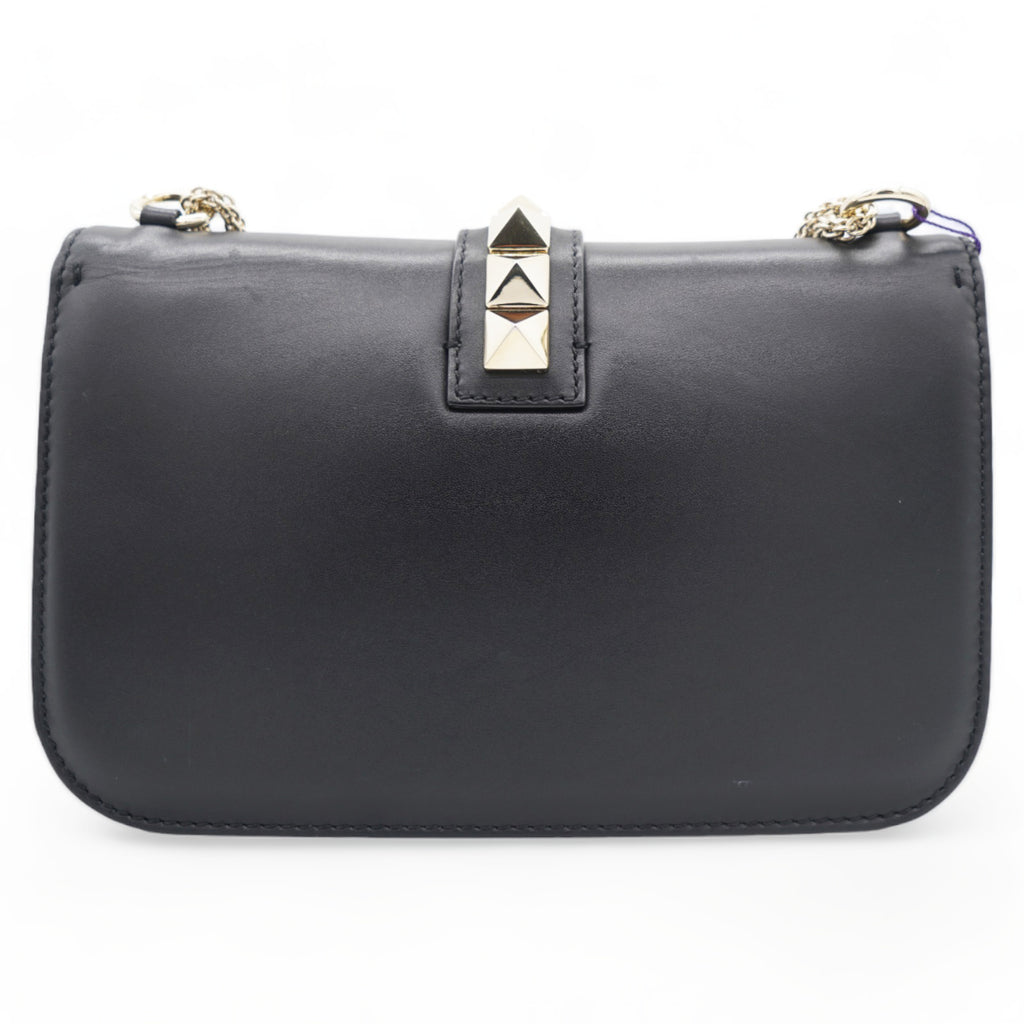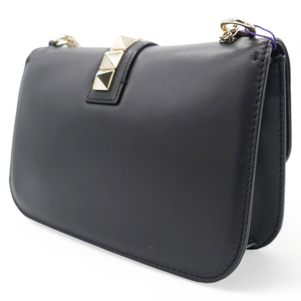 Black Leather Medium Rockstud Glam Lock Flap Bag