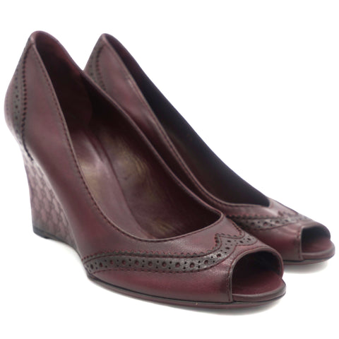 Minimal in design, this pair of Gucci pumps is a sight of pure beauty. The wedge heels of these shoes will reflect sophistication in every step. Crafted from leather, the precise cuts of this pair signify the brand's expertise in the art of shoemaking.