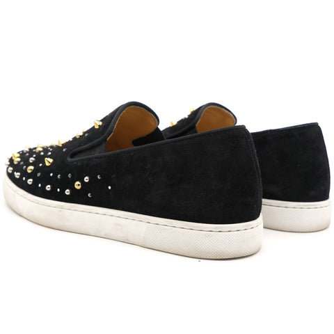Black Suede Studs Pik Boat Slip On Sneakers 36.5