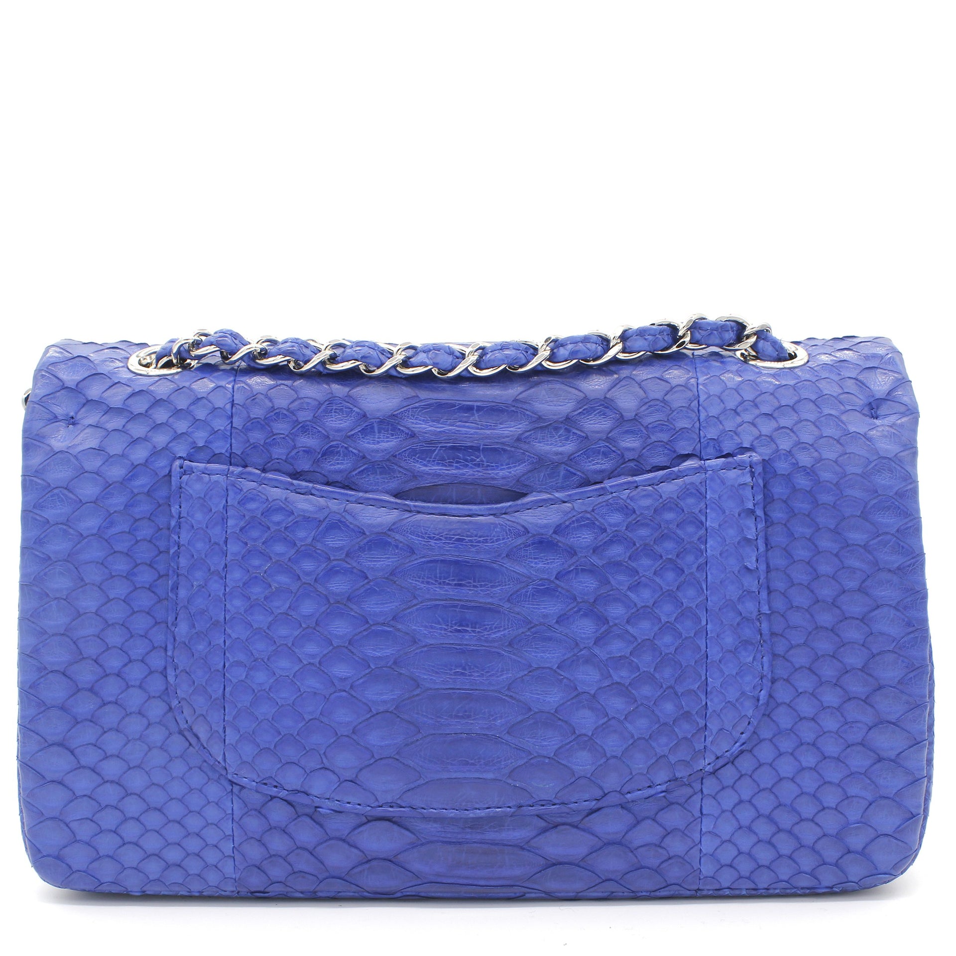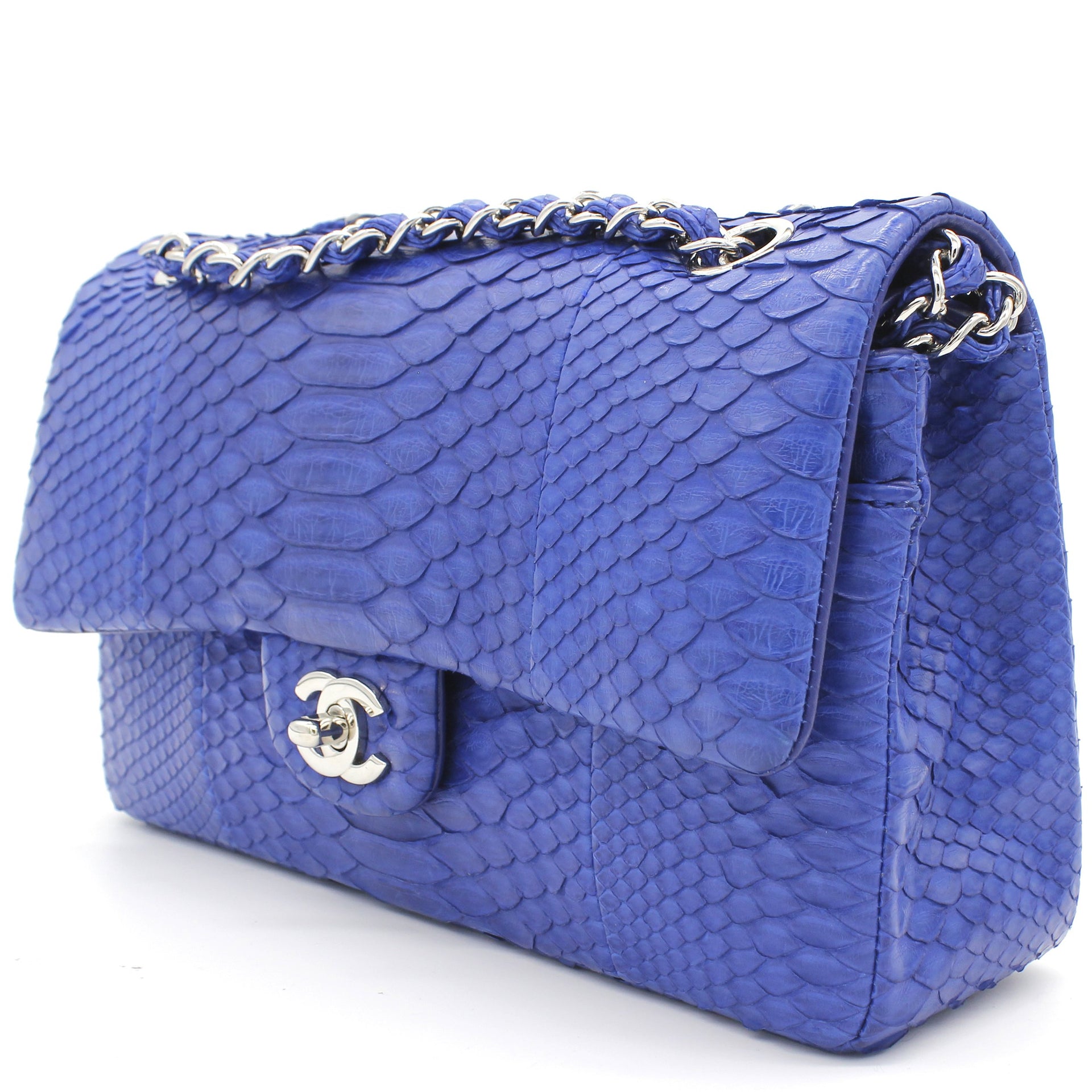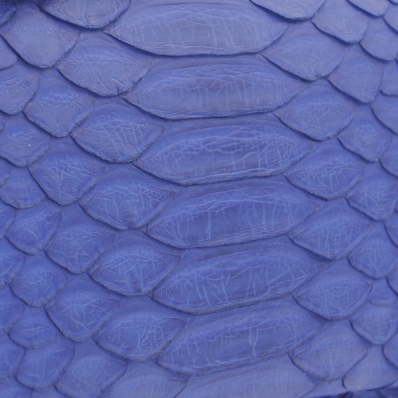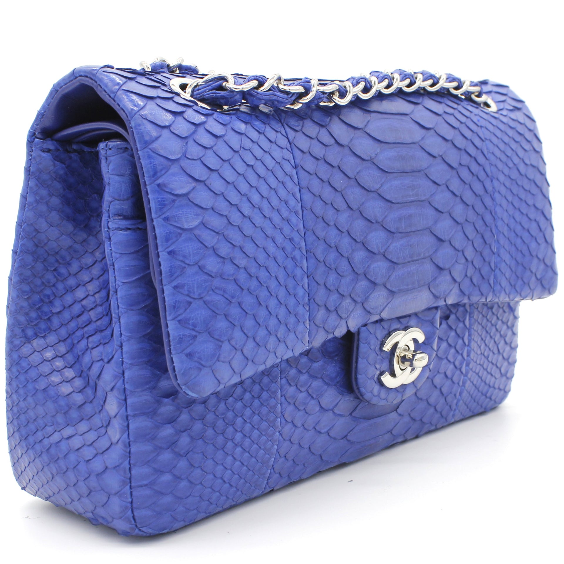 Exterior Material:   Blue snack skin with a leather shoulder strap and CC turnlock on the front.