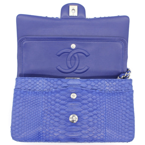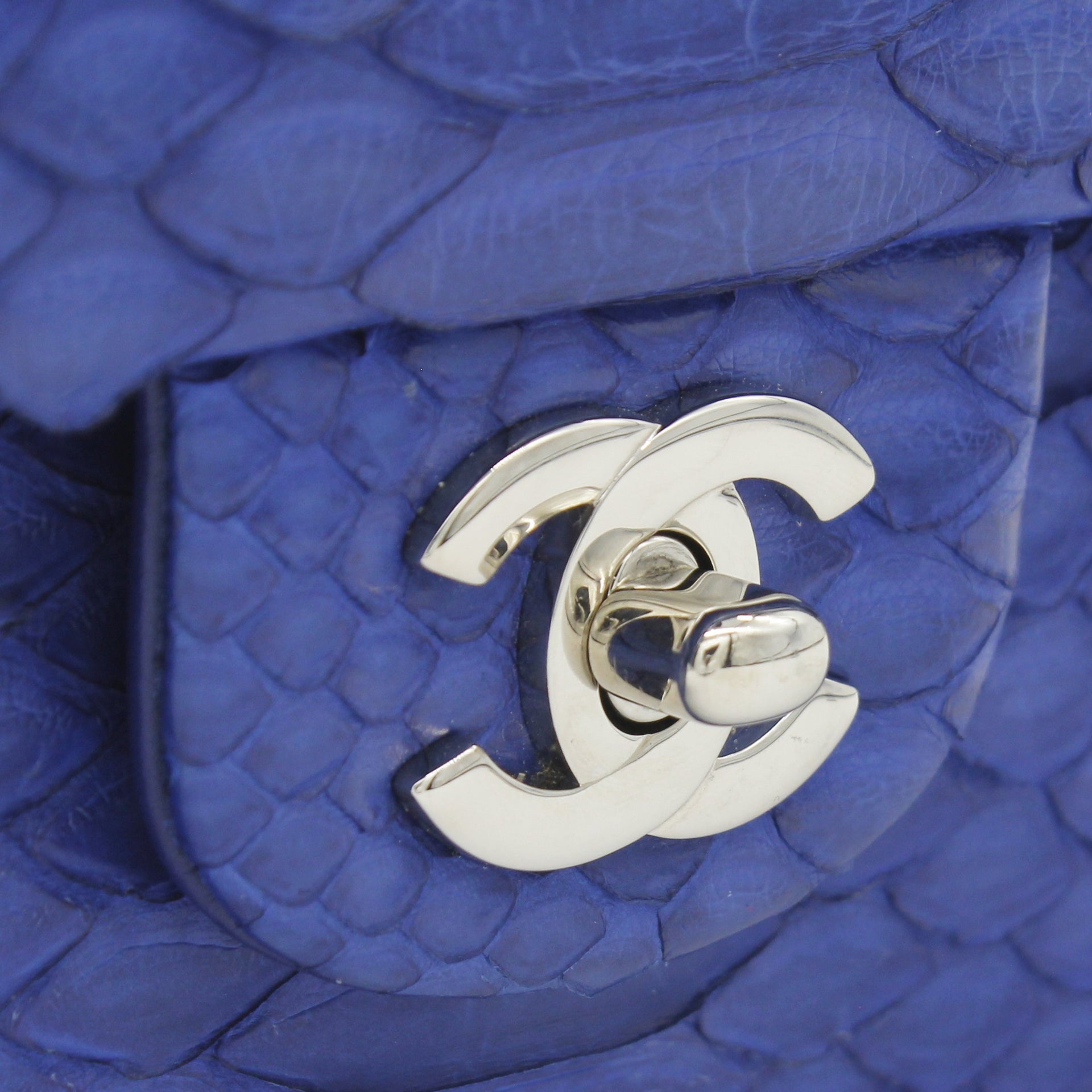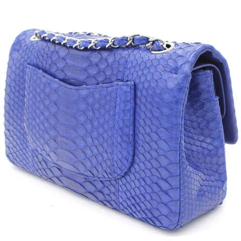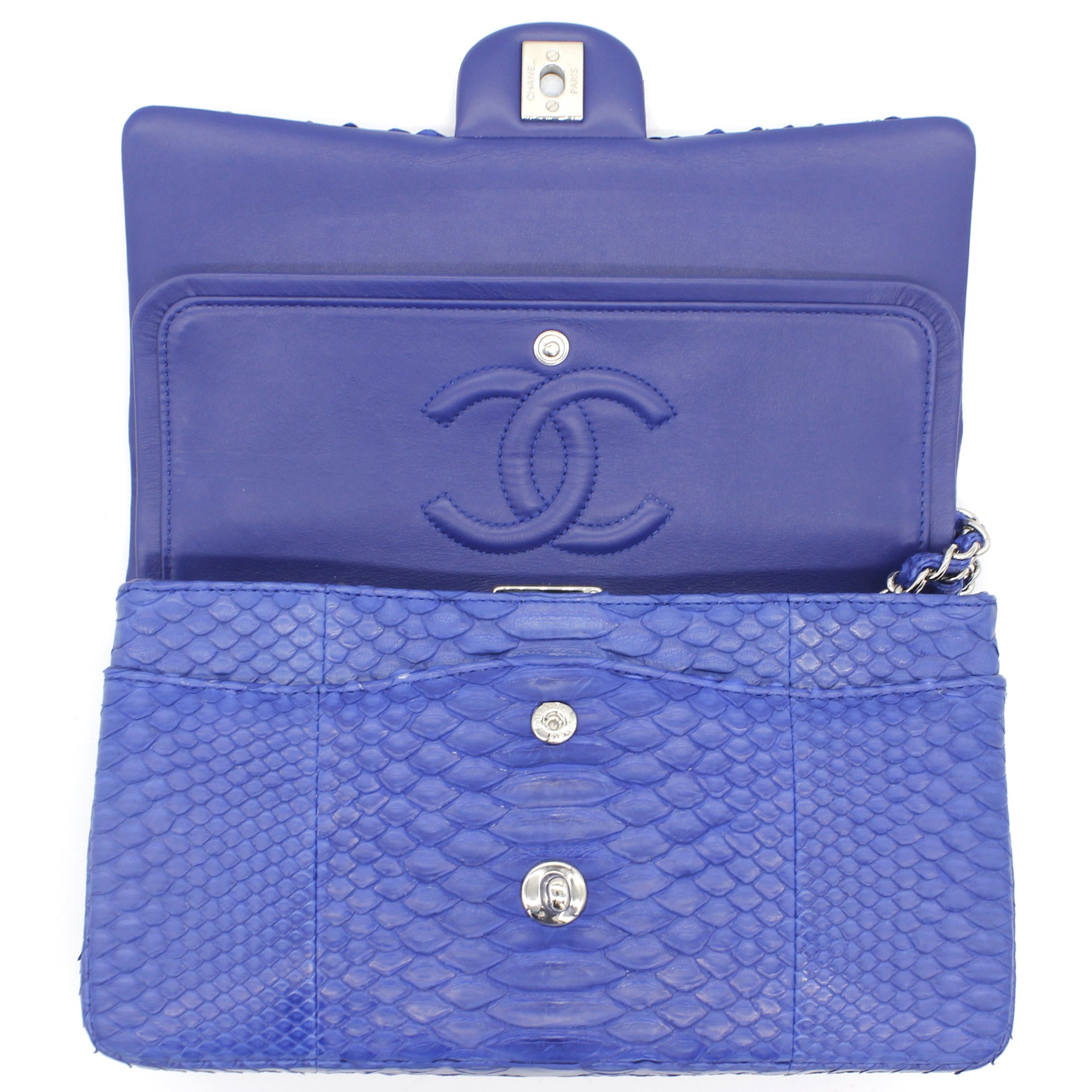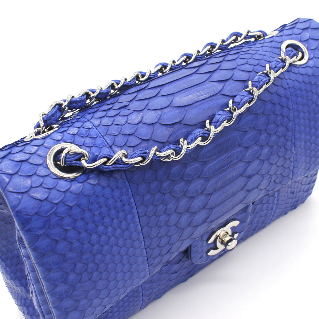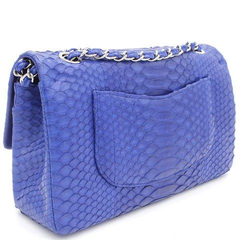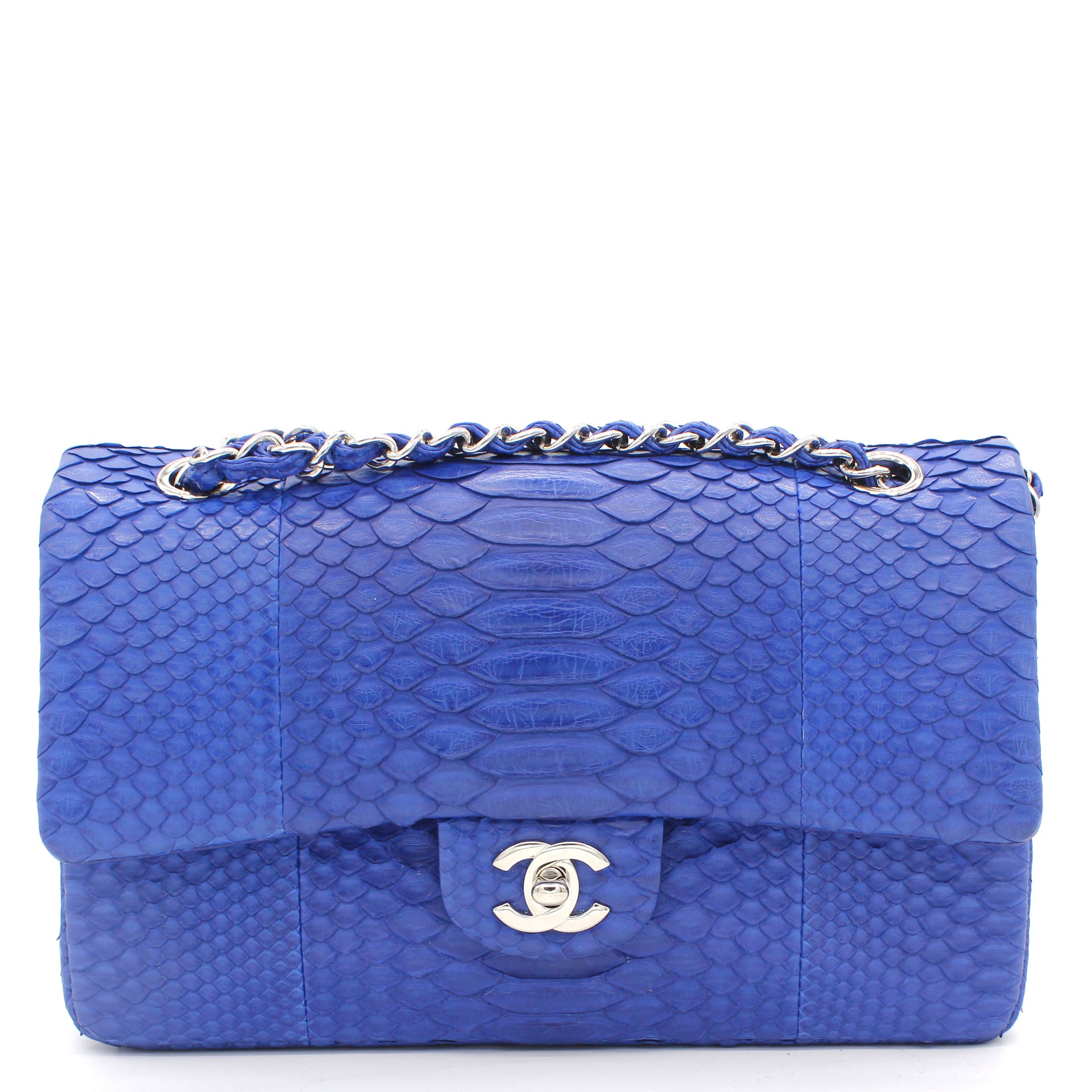 Exterior Material:   Blue snack skin with a leather shoulder strap and CC turnlock on the front.