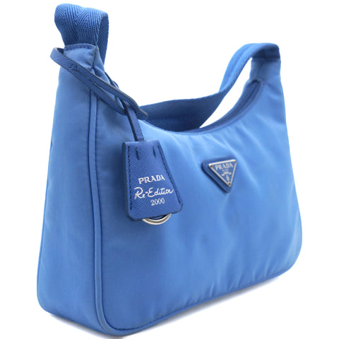 | The petite silhouette and classic elements made the Prada Re-Edition 2000 bag an instant hit among fashionistas. This beige bag features a single handle at the top and a well-sized interior. The triangular brand logo on the front gives the bag a signature finish. |