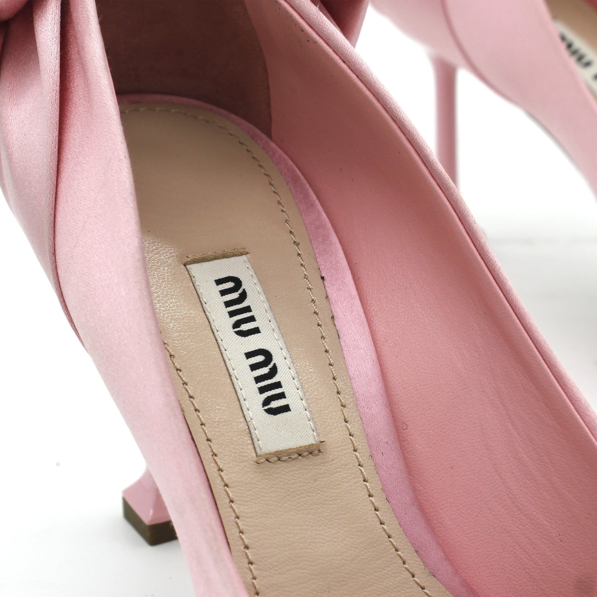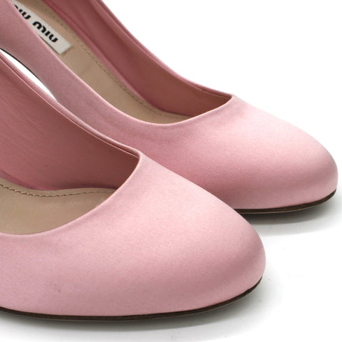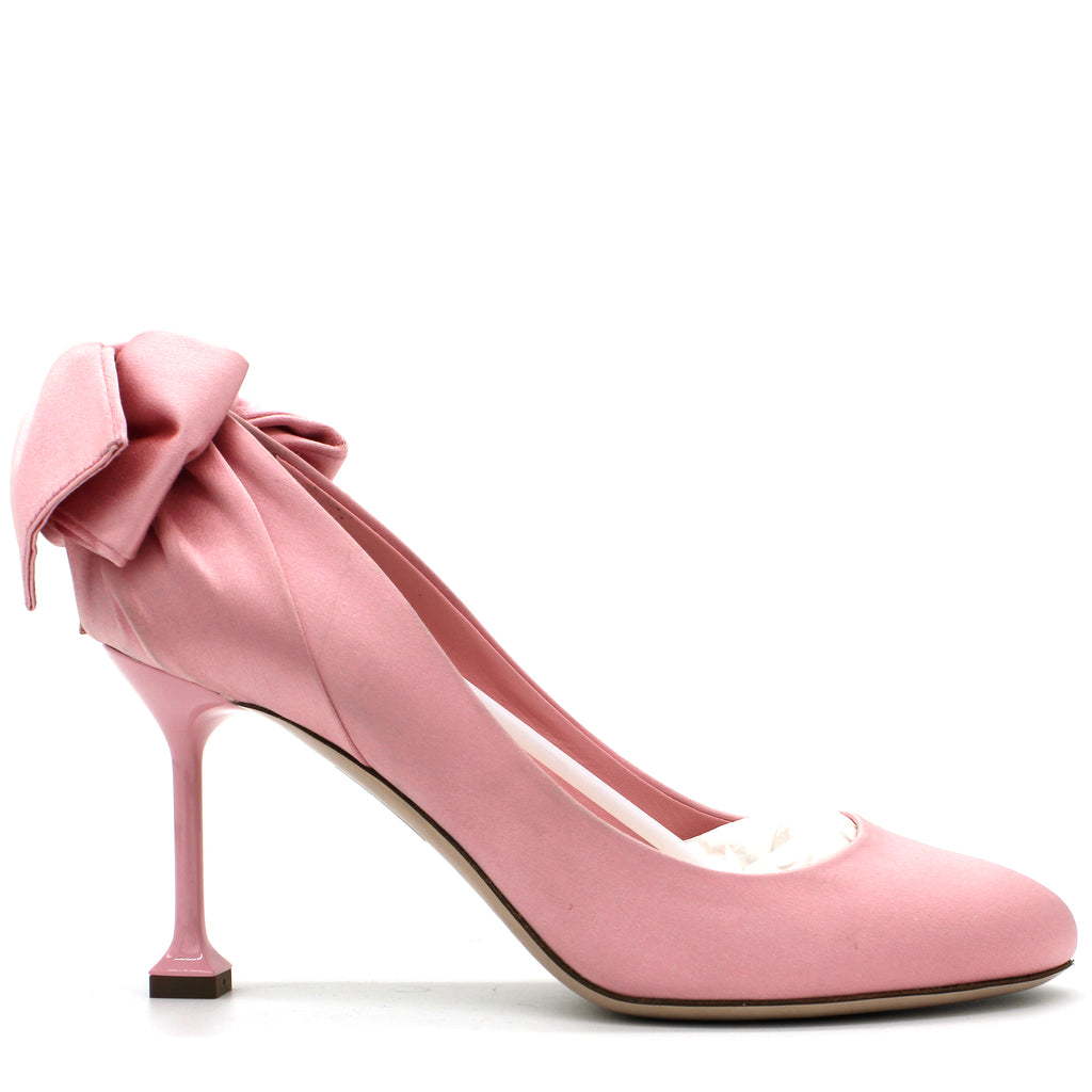 | Pink Satin Pumps featuring a pink satin bow embellishment and a 85mm heel. |