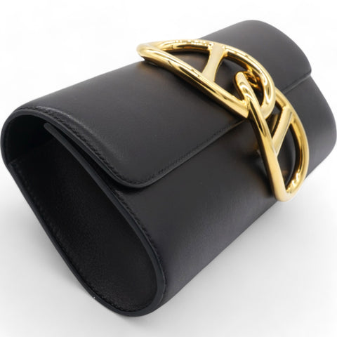 | This stylish clutch is crafted of smooth calfskin leather in black. The clutch features a double polished gold palladium Chain d'Ancre and opens to a matching leather interior. |