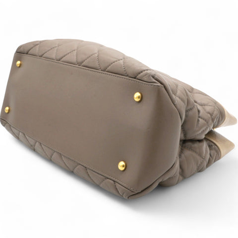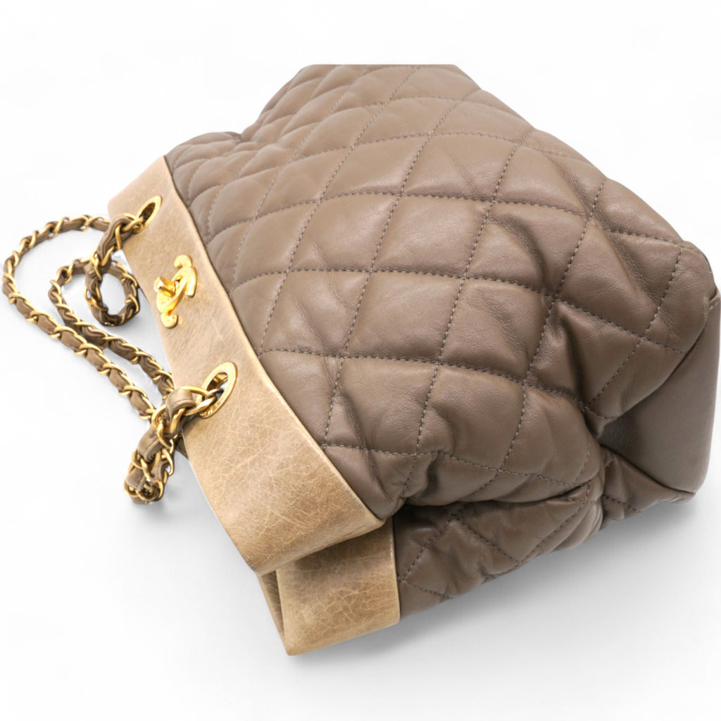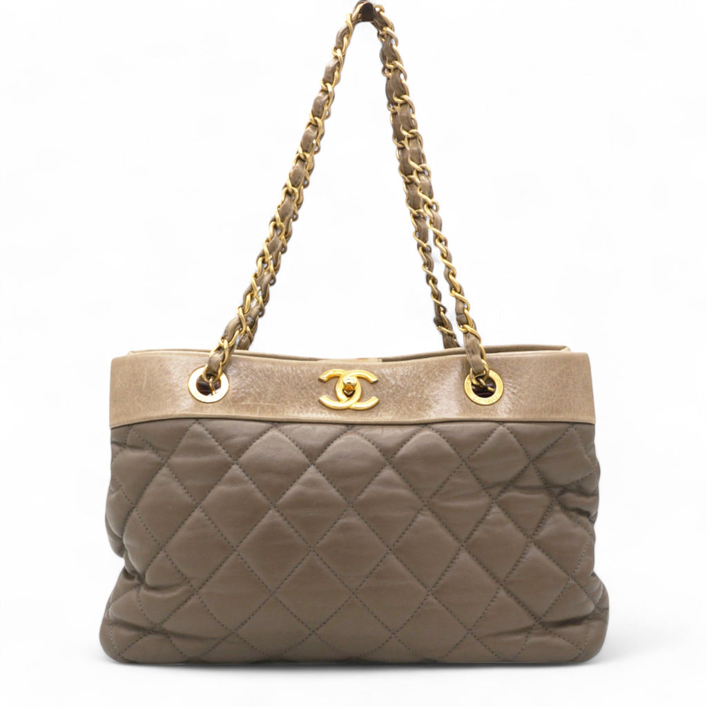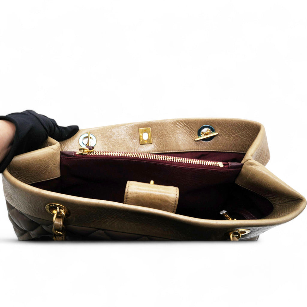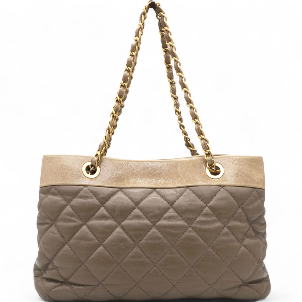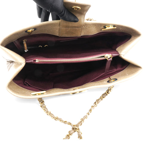 This sophisticated shoulder bag is finely crafted of supple calfskin leather with a signature diamond quilted design in a relaxed structure. It features gold chain link leather threaded shoulder straps and for the top crest a Chanel CC Mademoiselle turn lock opening. This opens to a partitioned plum fabric interior with zipper and patch pockets and a central zipper compartment. .