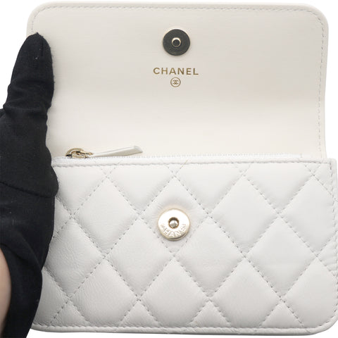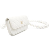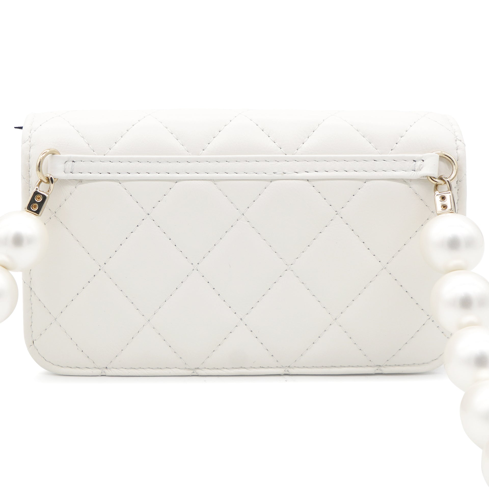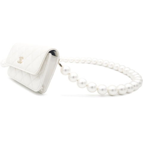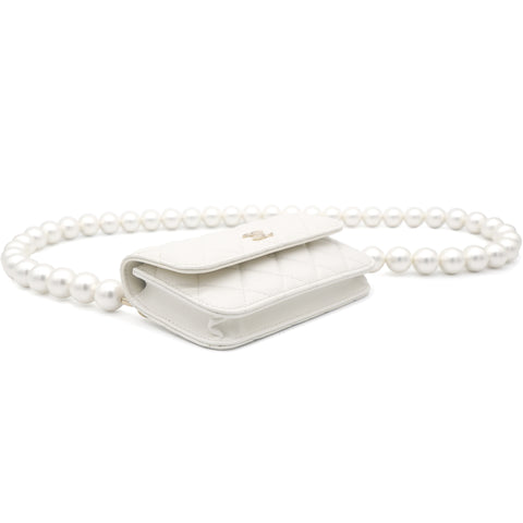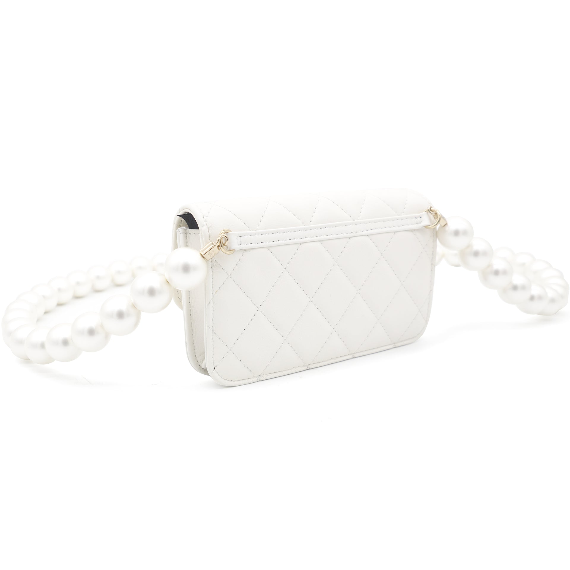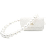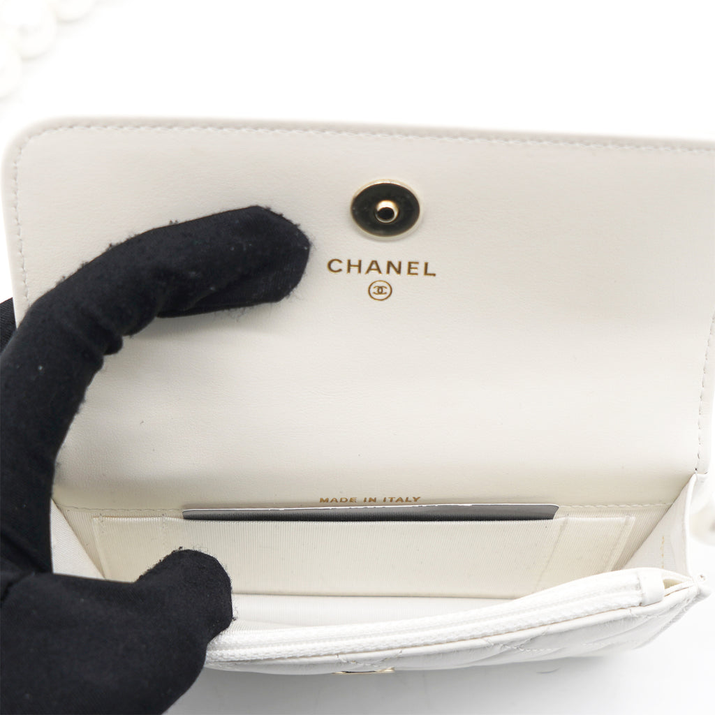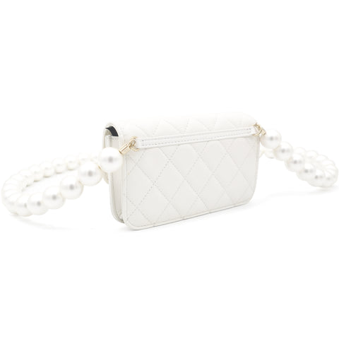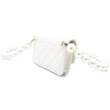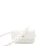 Calfskin Quilted Pearl Mini Wallet On Chain WOC White