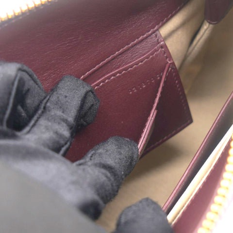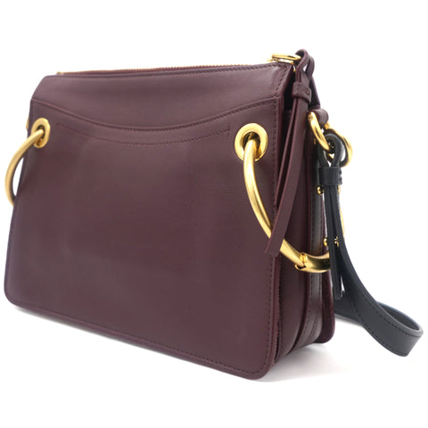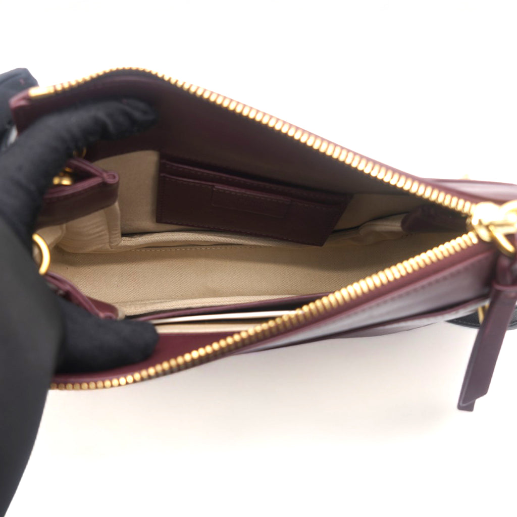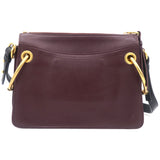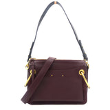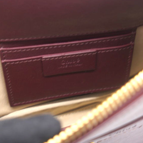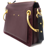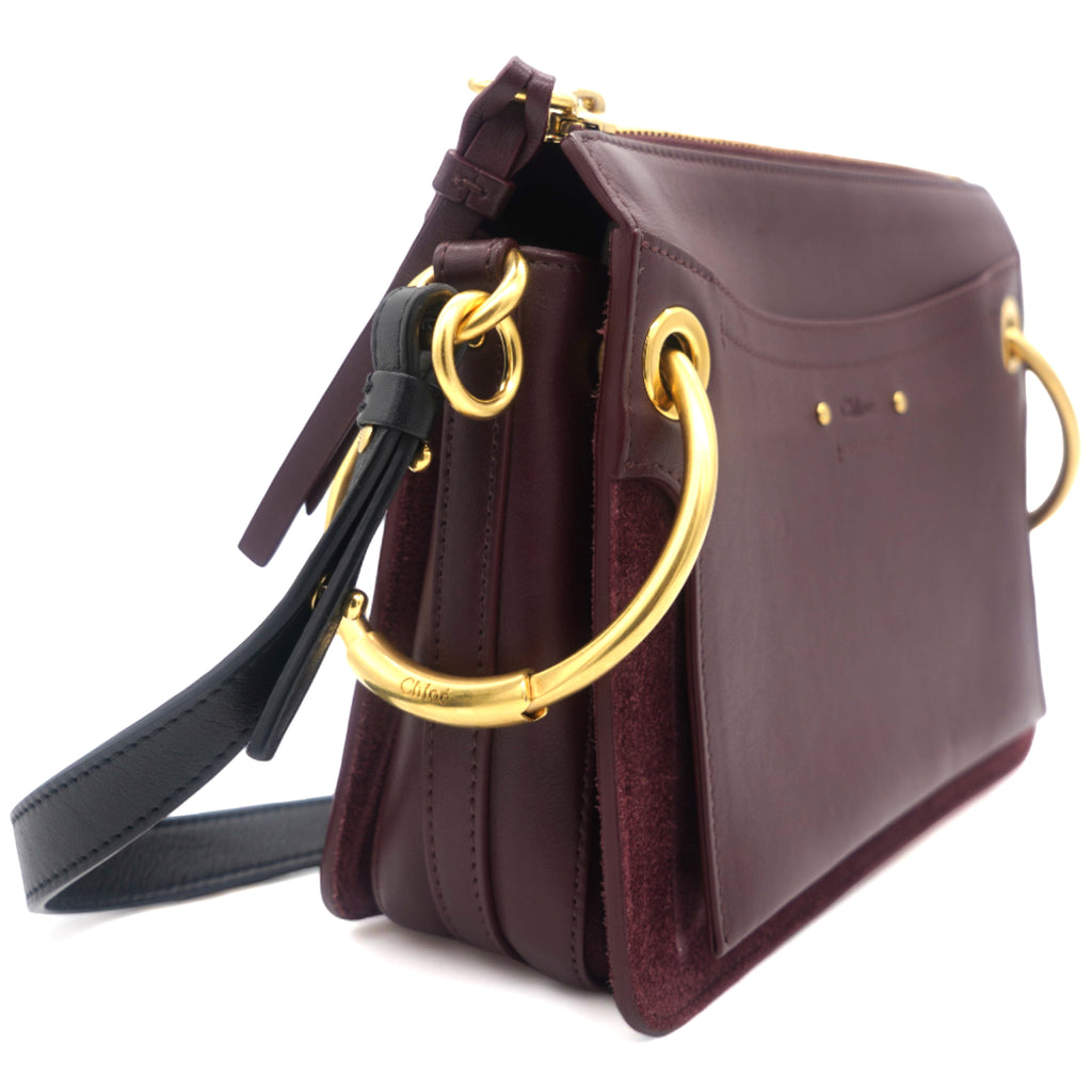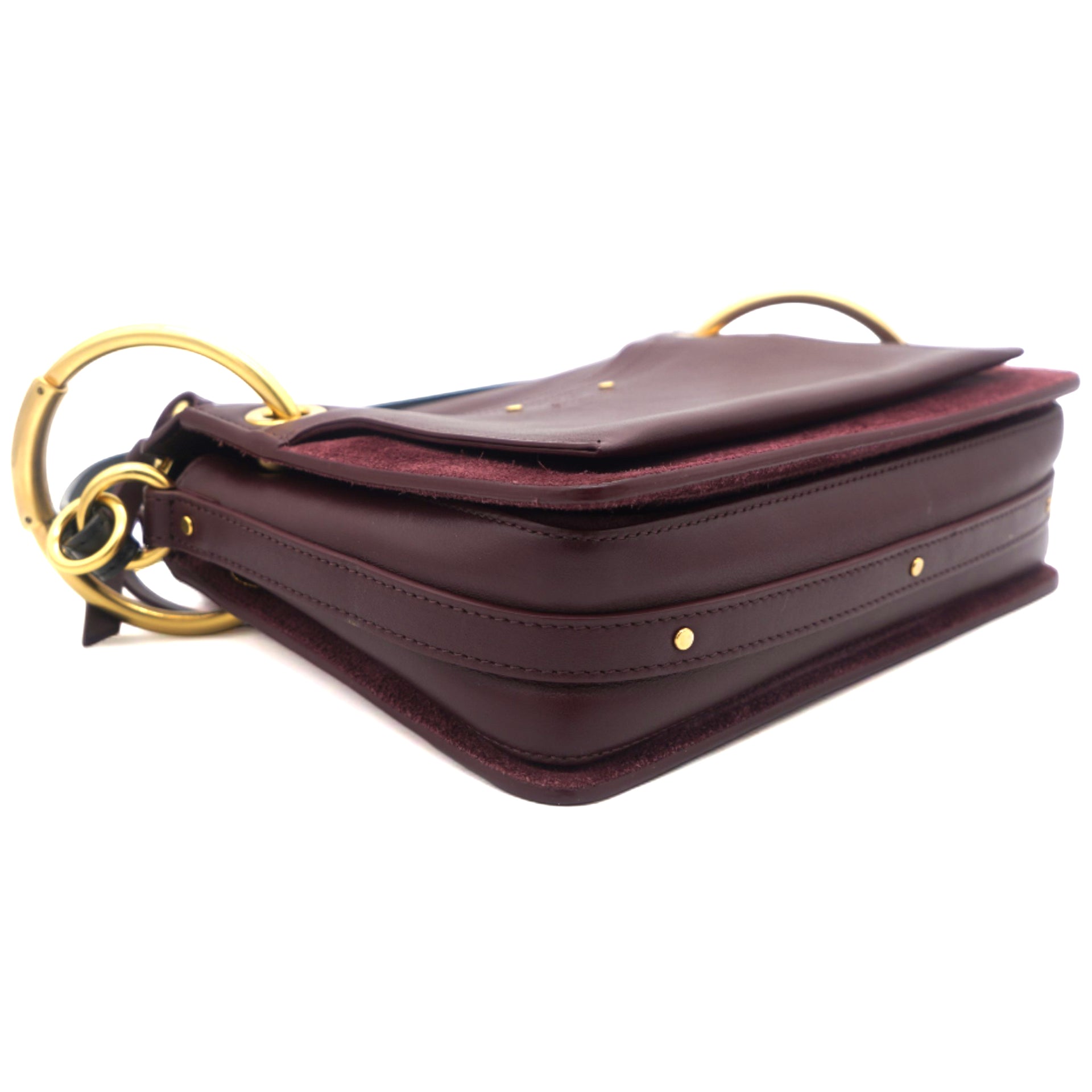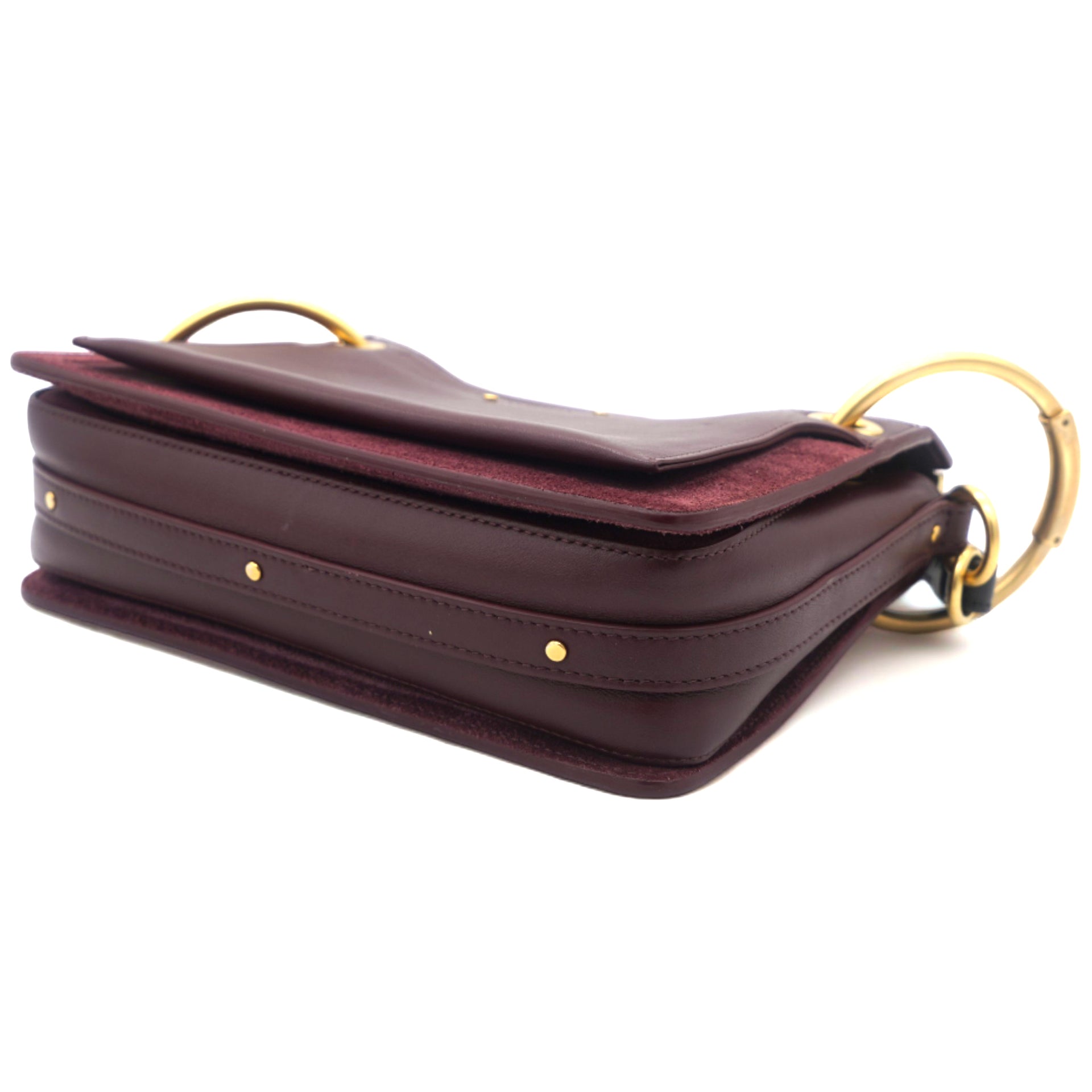 | This stylish handbag is crafted of smooth calfskin and suede leather in burgundy. It features signature large rings on either side, a short carry strap in contrasting color, and a long leather adjustable shoulder strap. The top zipper opens to a spacious beige canvas fabric interior with zipper and patch pockets. This is an ideal shoulder bag for everyday necessities, with the classic chic style from Chloe! |