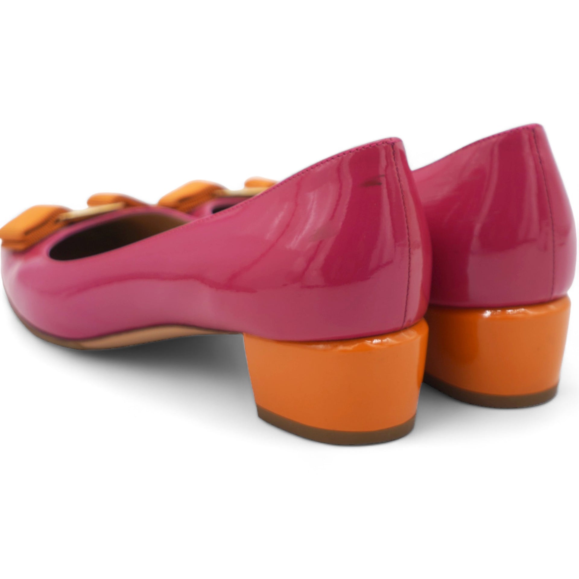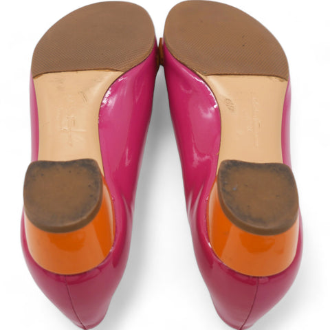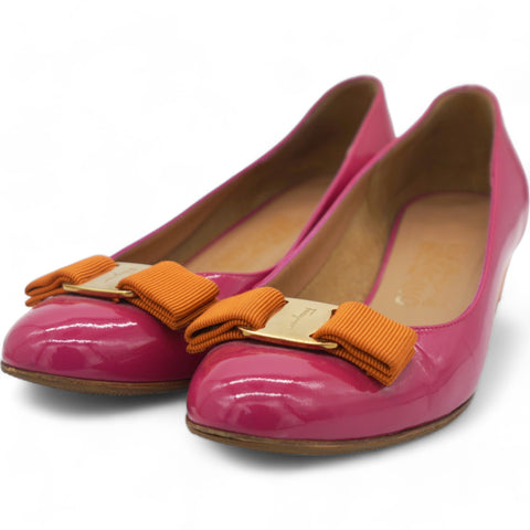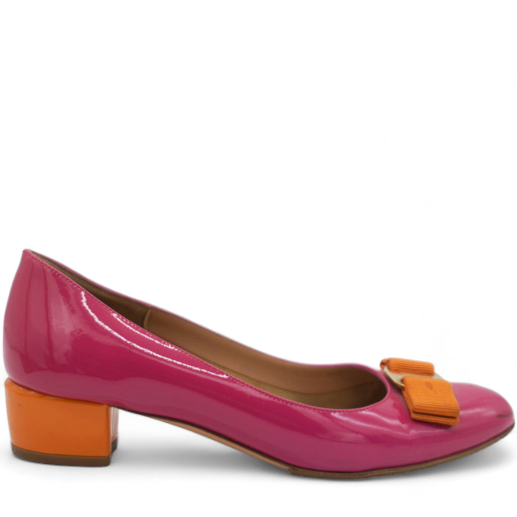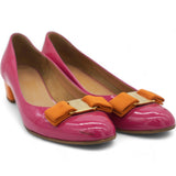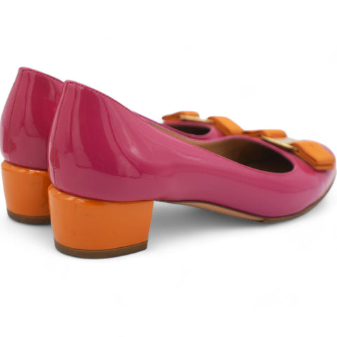 | Crafted for comfort and elegance, this shoe's vibrant fuchsia color adds a pop of color to any outfit. Designed with Salvatore Ferragamo's signature attention to detail, these pumps are the perfect blend of luxury and functionality. |