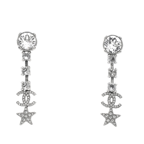The textured Chanel logo enhanced by a chic CC logo and stars design makes this pair of earrings an accessory to embrace the glamourous look. Crafted exquisitely with luxe silver-tone metal that impart a graceful élan to your look, these earrings can perfectly be paired with your evening gowns and dresses for that bit of bling.