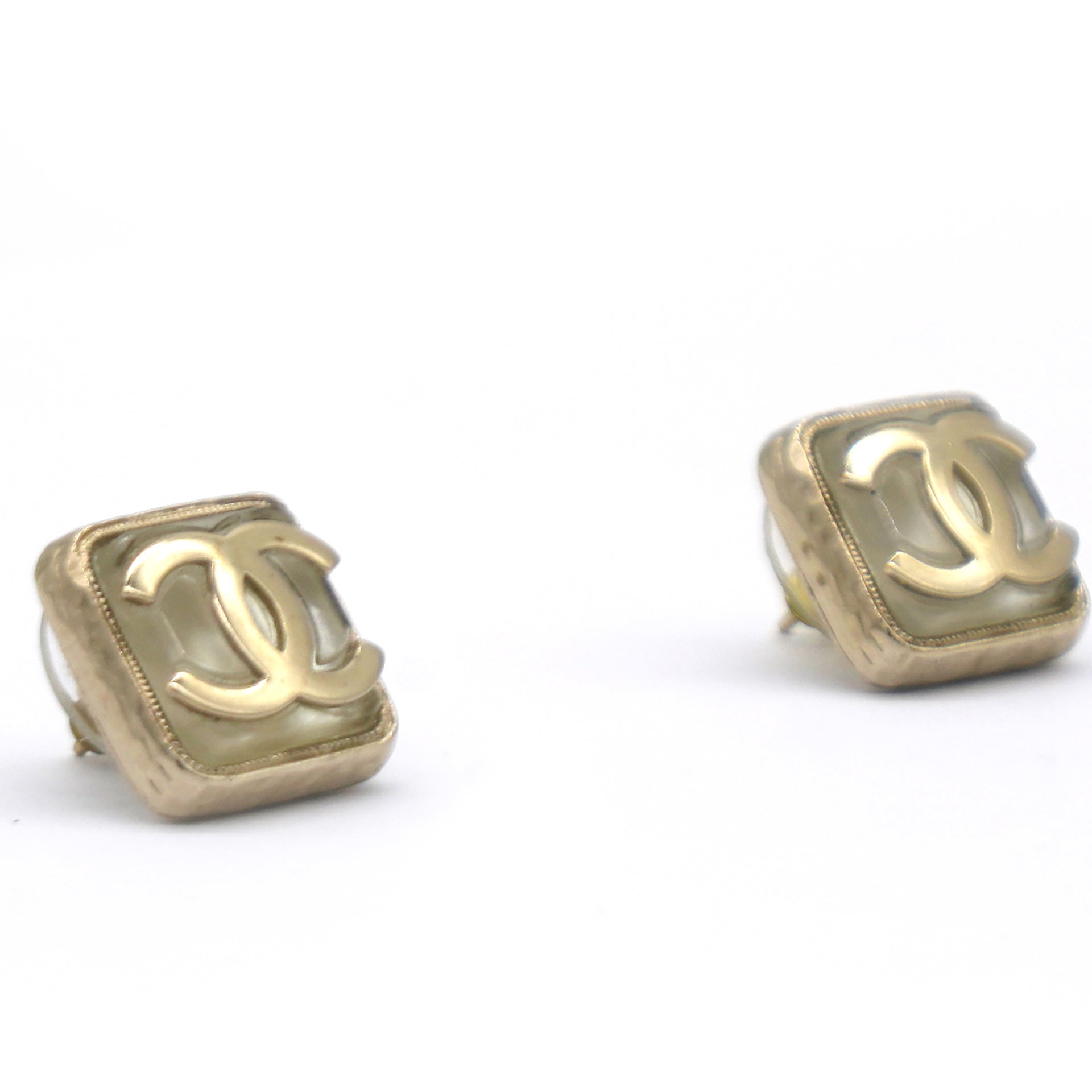 Expertly crafted with a timeless shape, these Chanel CC Square Earrings in Gold Tone make a sophisticated statement. With the iconic double C logo, they exude elegance and luxury. Made with high-quality materials, these earrings are the perfect accessory to elevate any outfit.
