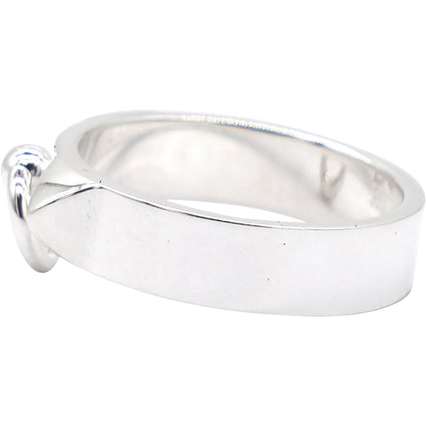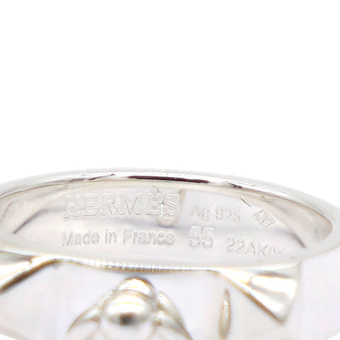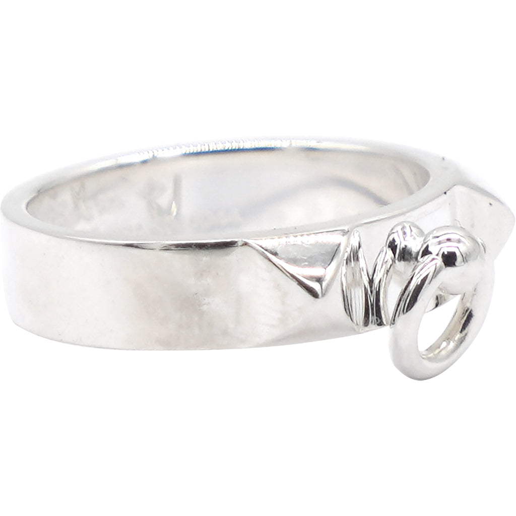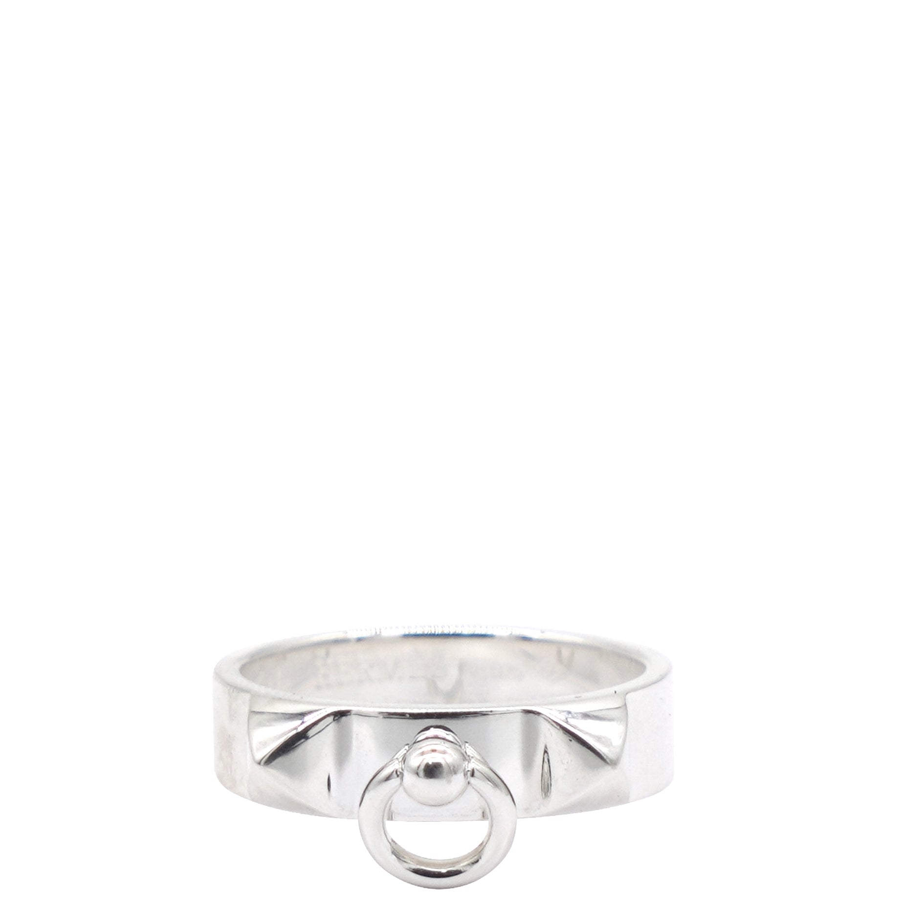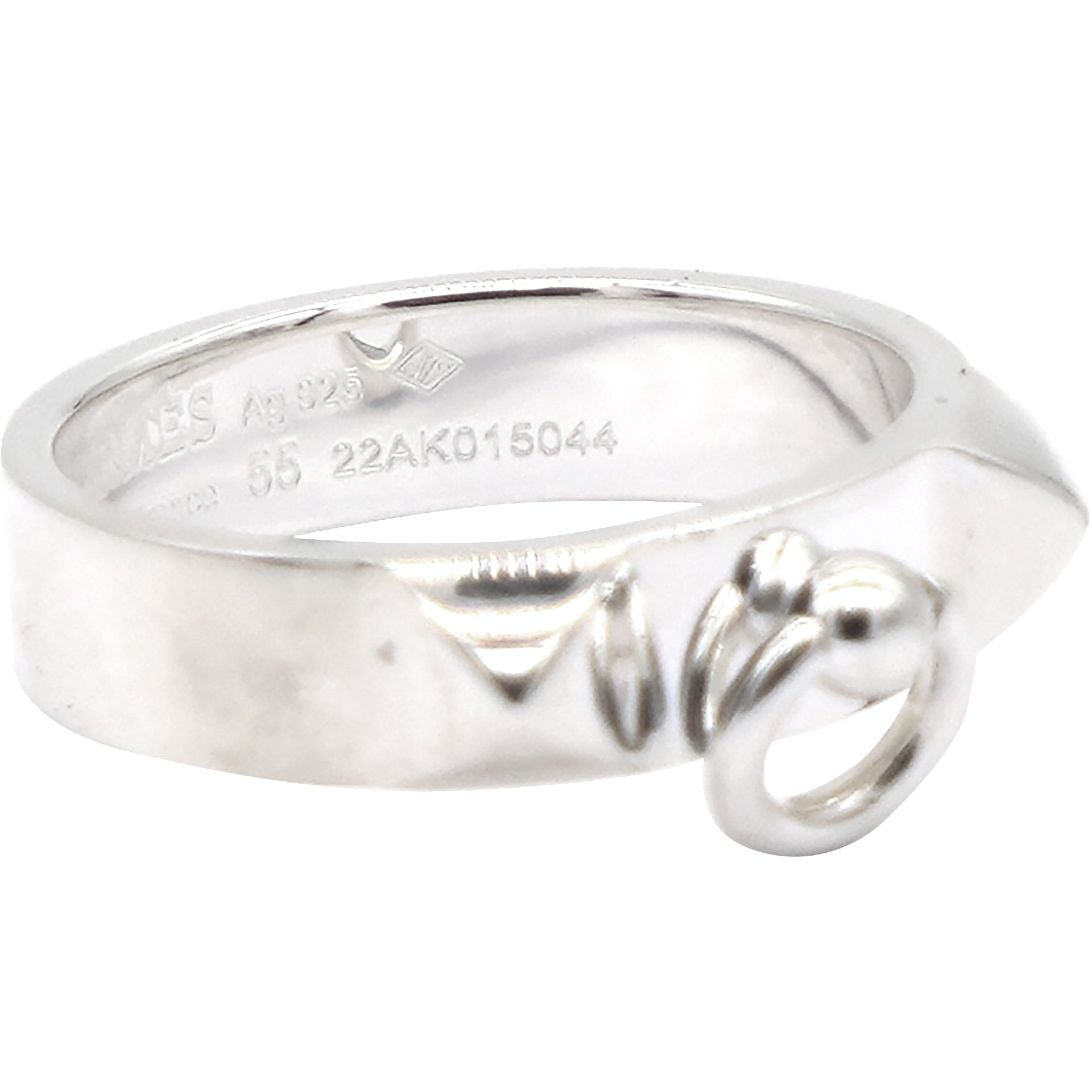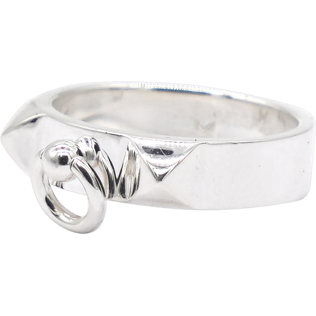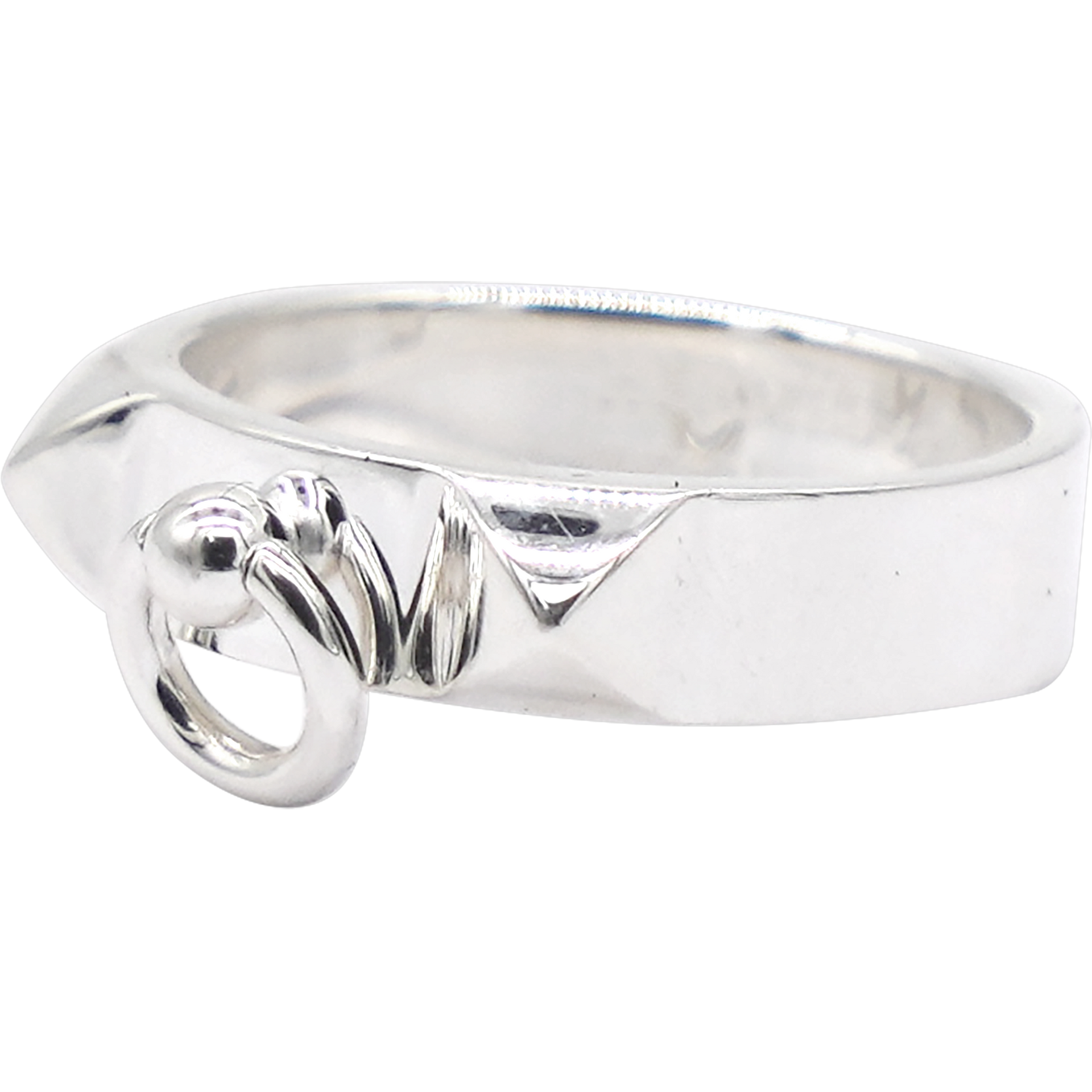 | Feast your eyes on this fabulous and incredibly popular Hermes Sterling Silver Collier de Chien Ring! Inspired by the ever-chic Collier de chien belt that was first introduced in 1927, this ring is a fabulous accessory for any Hermes lover. The ring is solid 925 sterling silver with medor studs. |