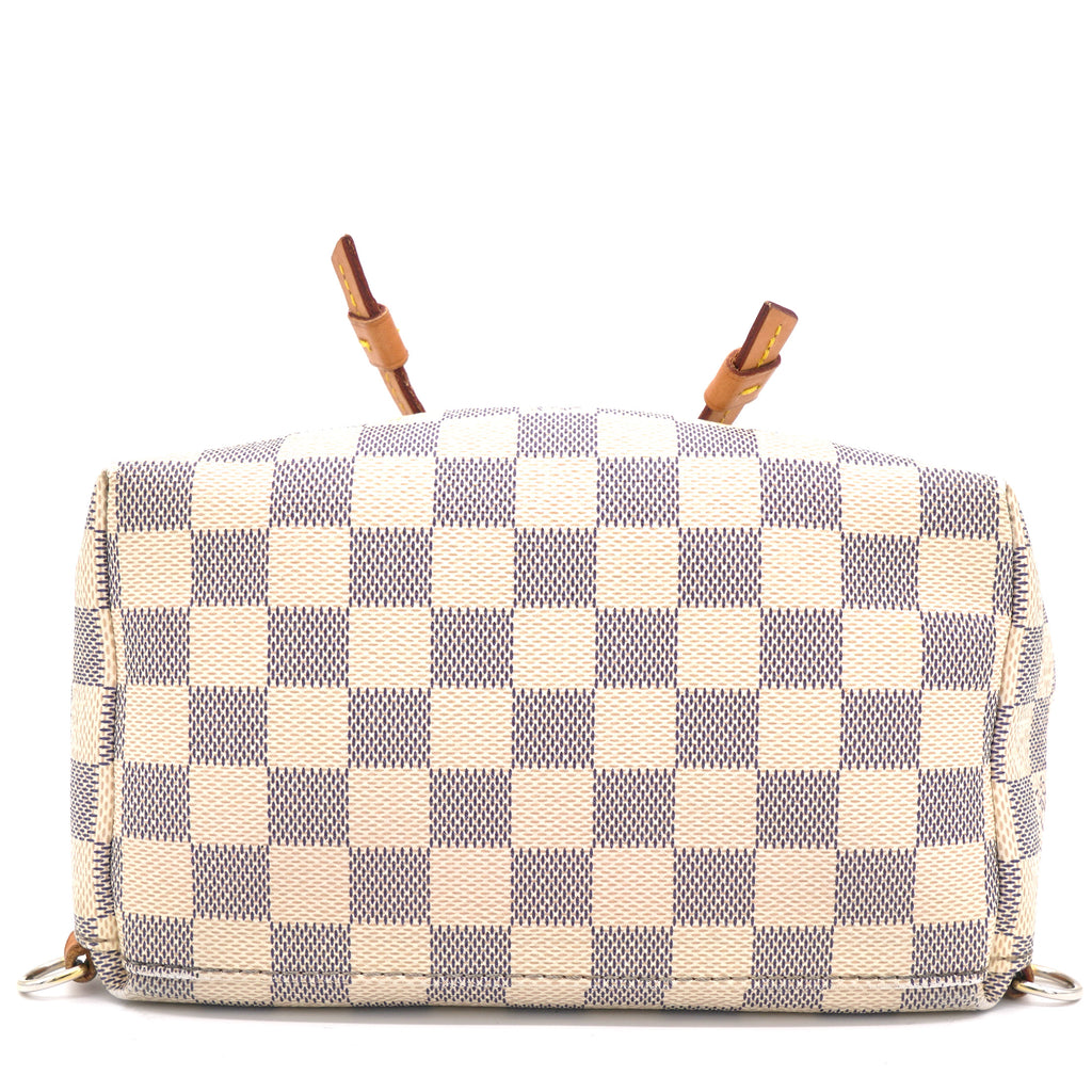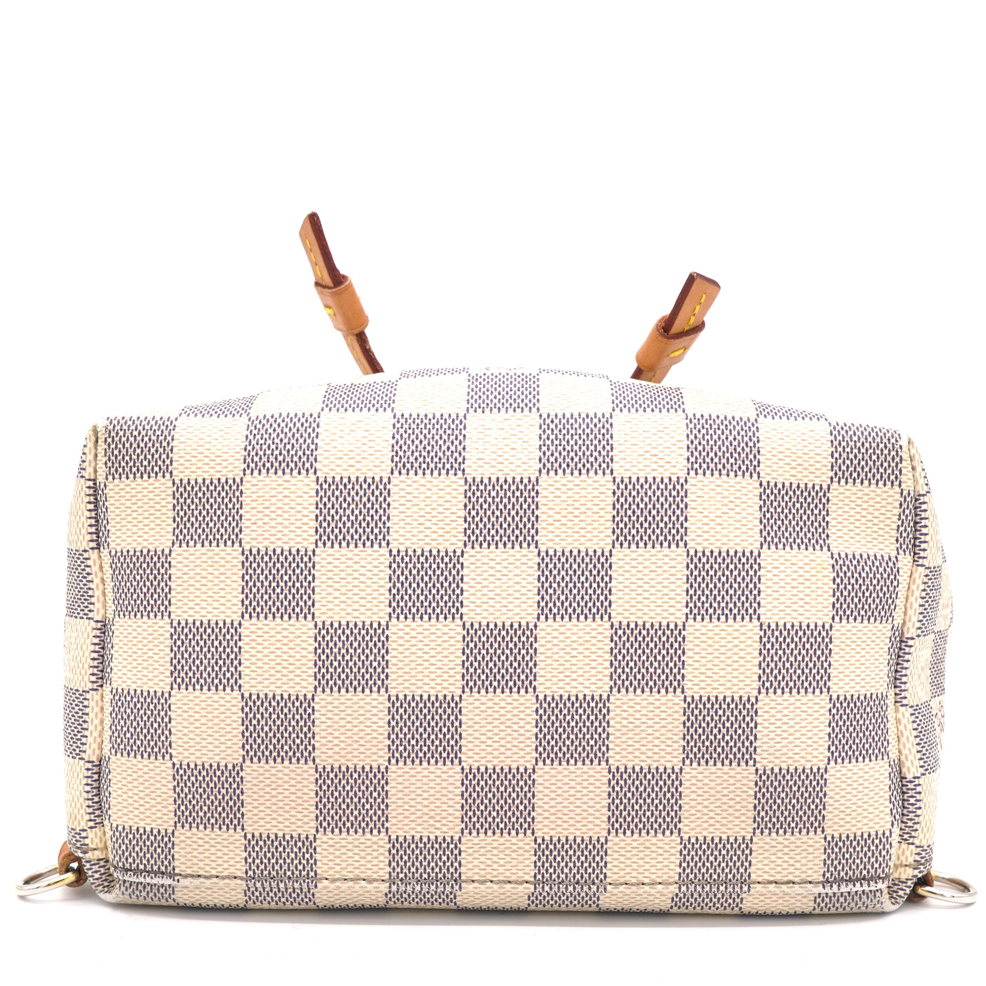 | The Louis Vuitton Sperone backpack is another cool design to rotate with your everyday bag. It's designed to be light and perfect for backpack lovers as well as non-lovers as it comes with a top handle and detachable straps. Made in Damier Azur canvas and trimmed with the brand's natural leather, the Sperone BB is a fine buy. |