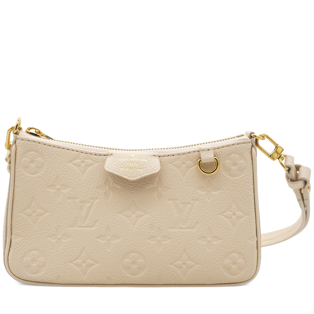 This handbag is crafted of signature epi textured leather in cream with smooth leather trim. This convenient handbag features an optional adjustable leather strap and a removable gold chain strap. The top opens to a beige striped canvas interior.