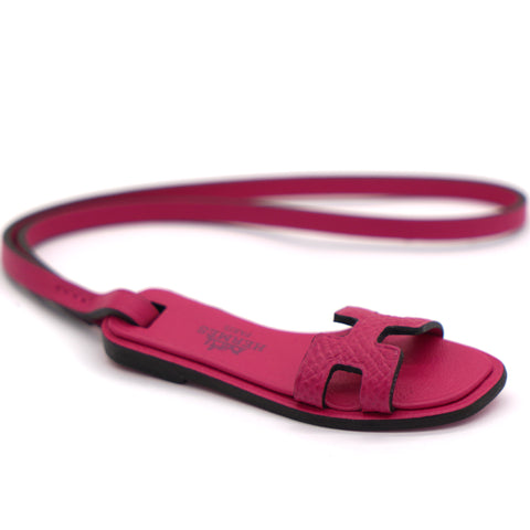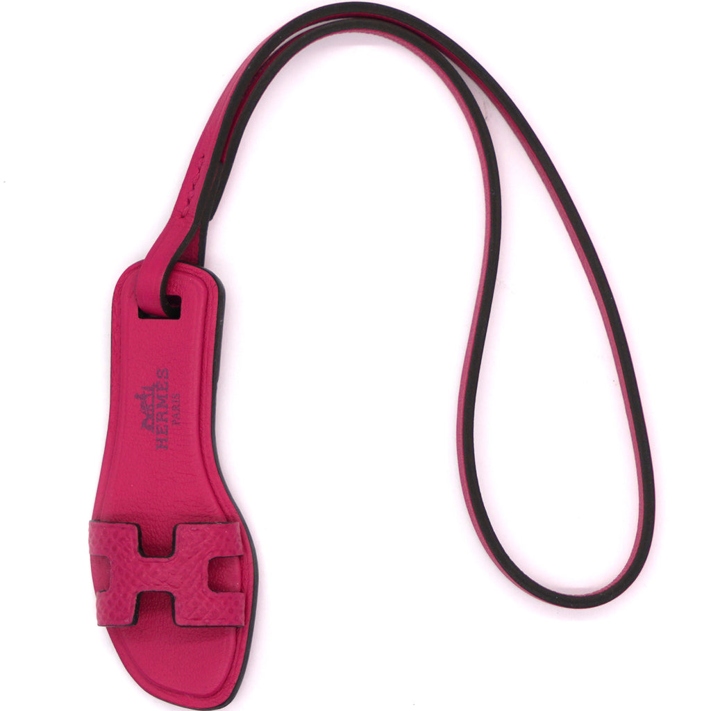 | This stylish sandal charm features Rose Mexico epsom calfskin leather at the H strap, and a brown leather insole and strap. |