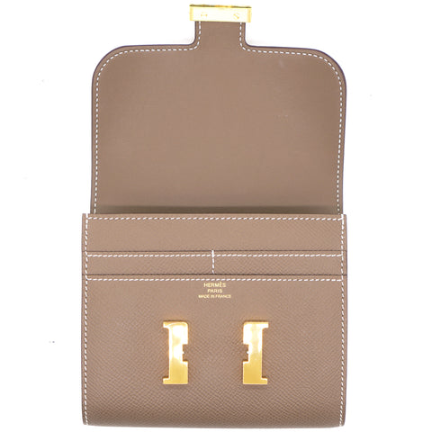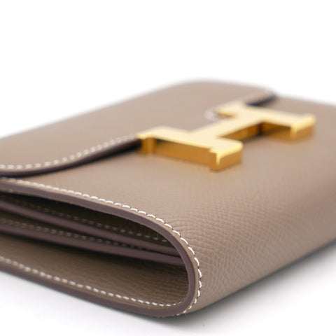 The Constance wallet from Hermes is nothing less than a wondrous work of art. It is crafted with Epsom leather and is secured by a gold-plated 'H' tab closure. It has undergone the excellent work of talented artisans, with every stitch giving praise to high quality and authenticity. It boasts a well-sized leather interior with a zip compartment and multiple slots for your ease. Brimming with lavish details and artistry, this lovely pink creation deserves to be owned by no one but you.