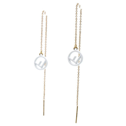 | These elegant long drop earrings by FENDI are crafted from gold-tone metal and feature a sleek chain design. At the end of each drop hangs a signature “F ” logo pendant, beautifully detailed in glossy white enamel. The combination of minimal lines and iconic branding makes these earrings a refined yet bold statement — perfect for elevating any day or evening look. |