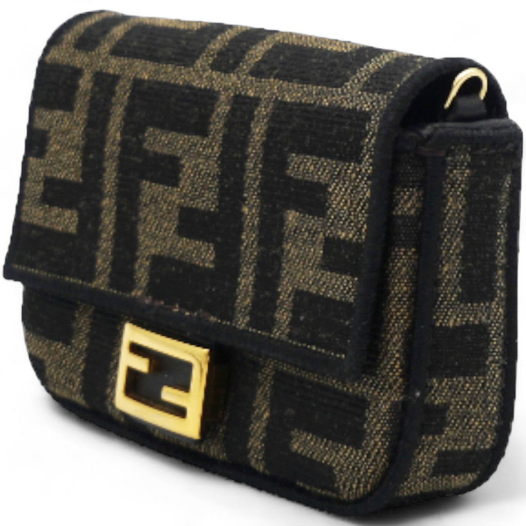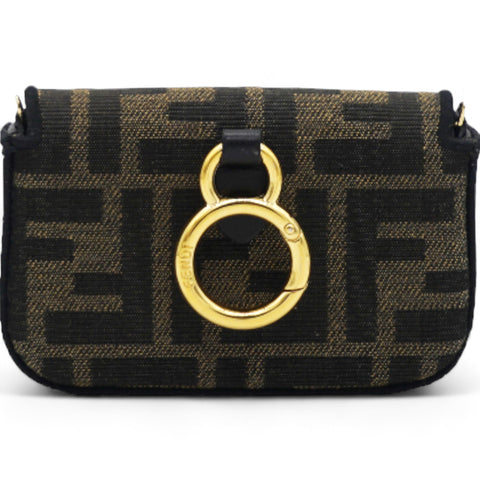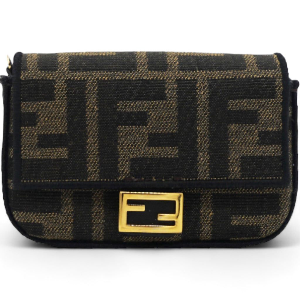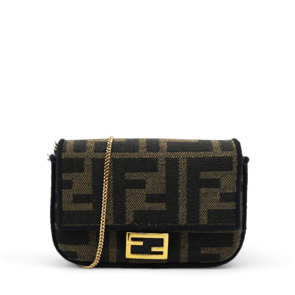 Fabric Jacquard FF 1974 Nano Baguette Charm Tobacco Moro Black