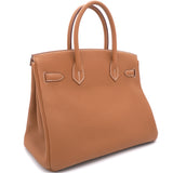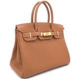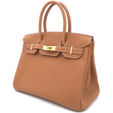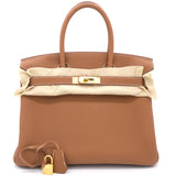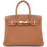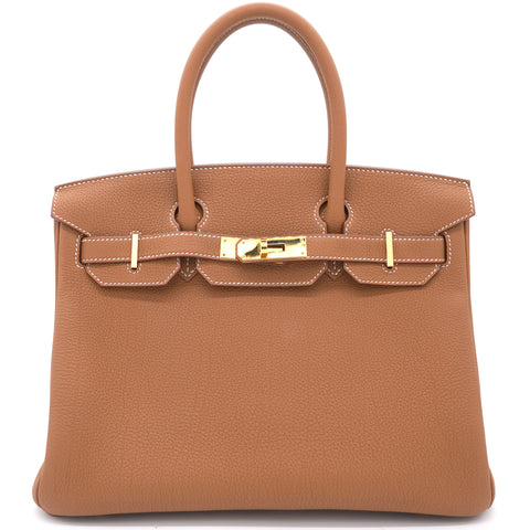 | If you've been wishing to own an authentic Birkin, there is no better time to buy this coveted work of art than now. Here, we have this Gold Birkin 30 just for you. Crafted in France from Togo leather, the bag features dual top handles and a matching clochette. The bag comes with gold-plated hardware and a spacious leather-lined interior to hold all your belongings. Durable and resistant to wear, the Birkin is an investment meant to last. |