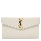 The Uptown pouch from Saint Laurent is exceptionally well-made in terms of its style and functionality. It has been designed using grey grained leather on the exterior with a gold-toned 'YSL' logo attached to the flap. This sleek wallet comprises of a fabric-lined interior that houses your belongings stylishly.