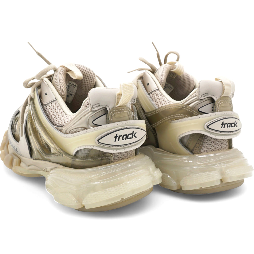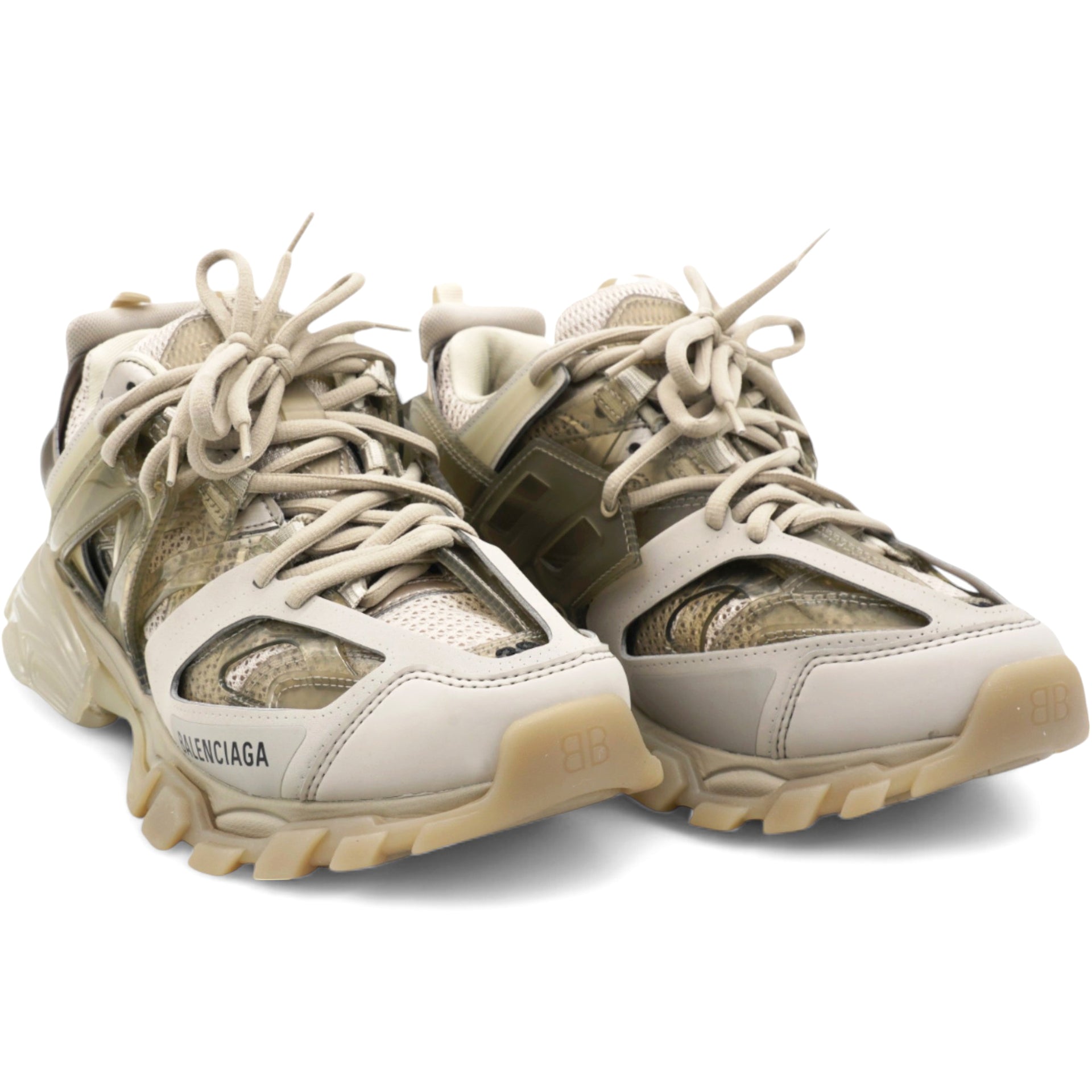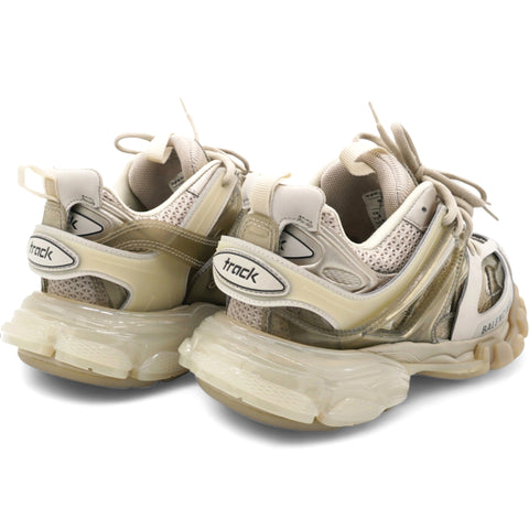 Low-top layered mesh, faux-leather, and transparent rubber sneakers in grey and beige. · Lace-up closure at vamp · Logo stamp and webbing pull-loop at padded tongue · Webbing pull-loop at padded heel collar · Logo printed at outer side · Textured transparent rubber midsole