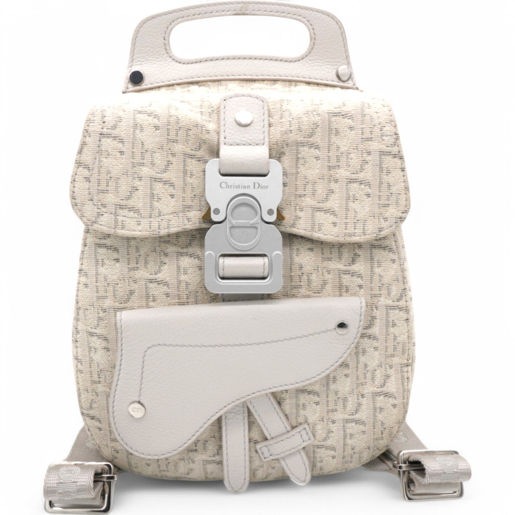 HOMME Oblique Jacquard Calfskin Mini Saddle Backpack Beige