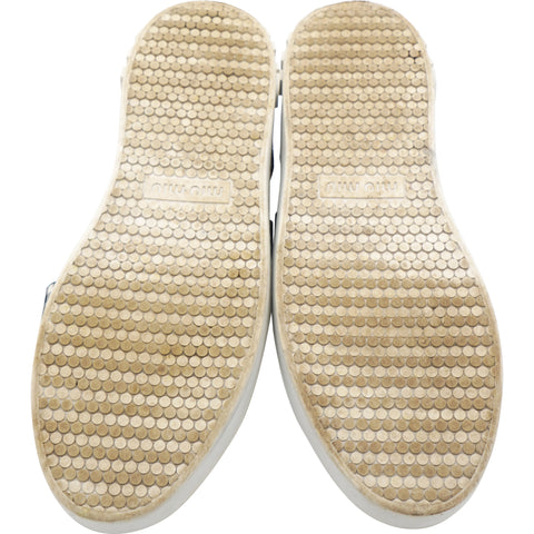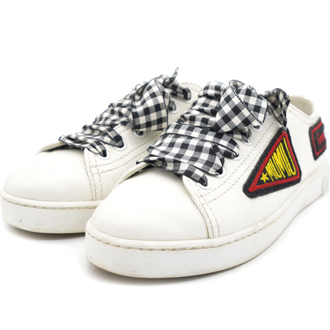 | These stylish white sneakers detailed in MIUMIU patches and black and white gingham lace-up, this sneakers elevated your outfit straight away. |