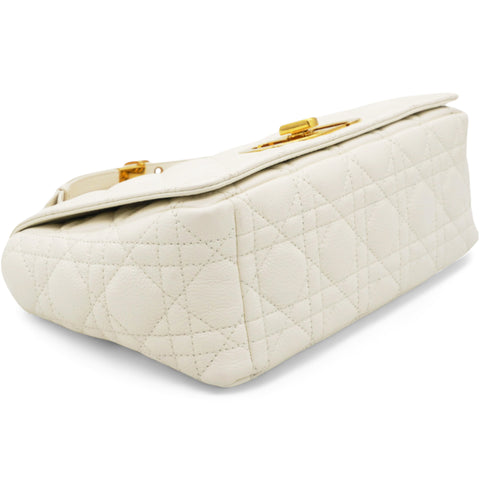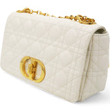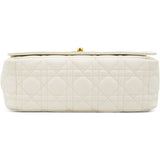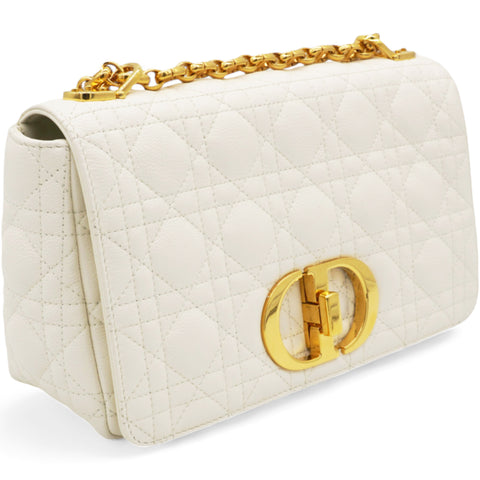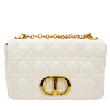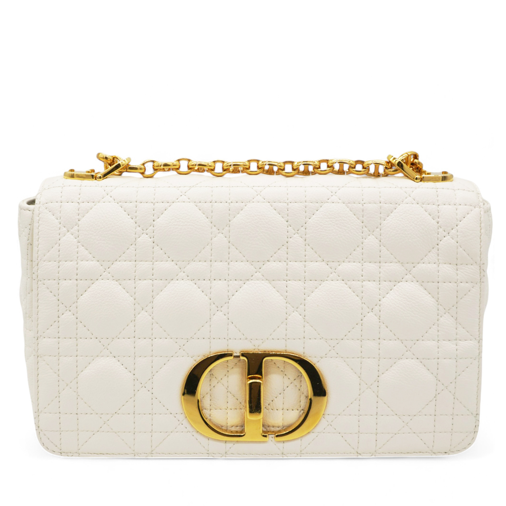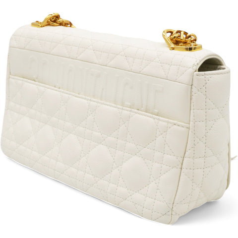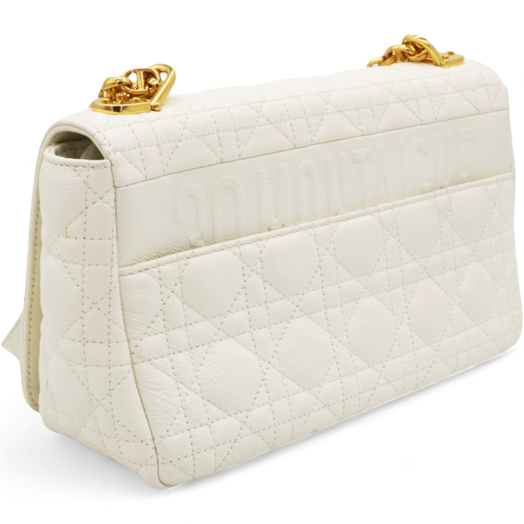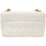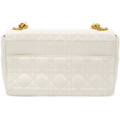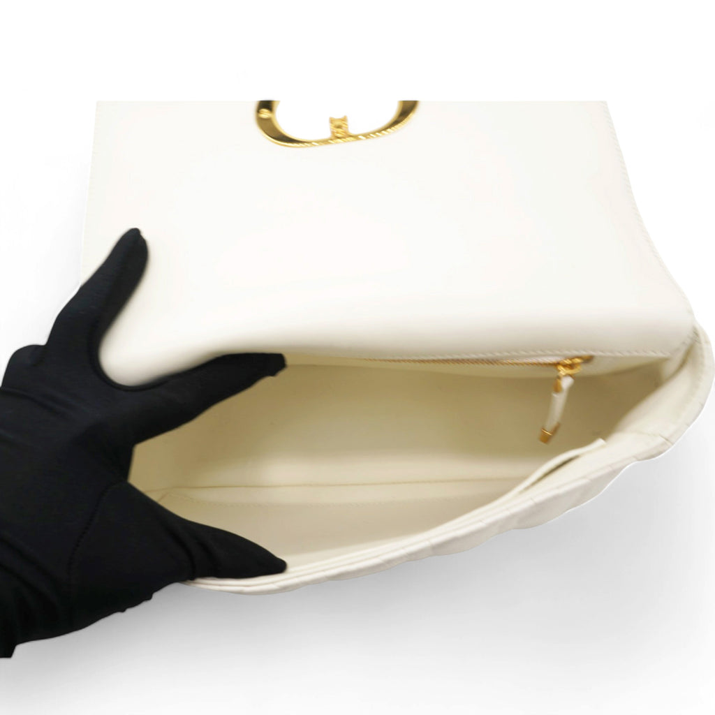 | This flap bag is finely crafted in a white solid colored lambskin leather. The bag features an adjustable belt strap and polished gold hardware. The flap opens to a white leather interior with a zipper pocket. |
