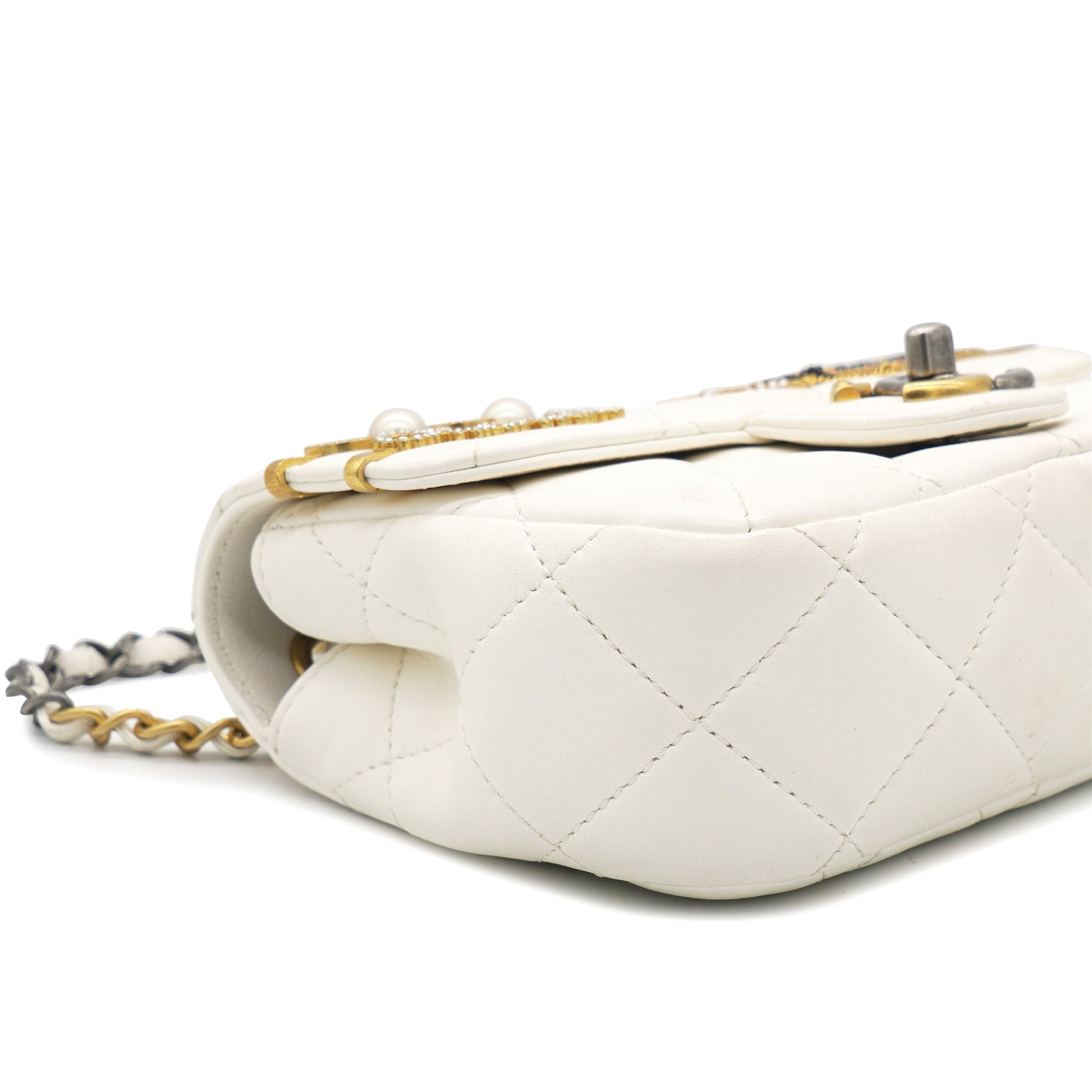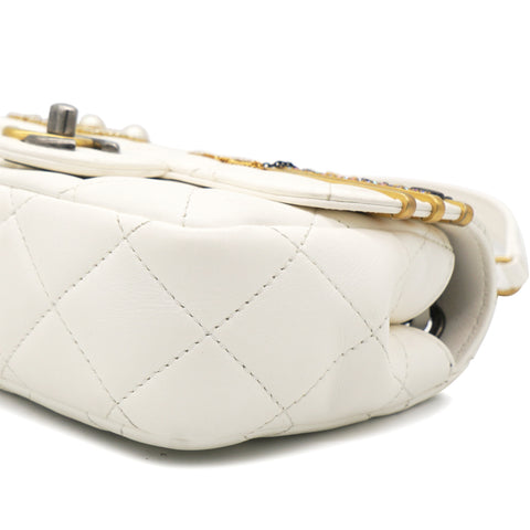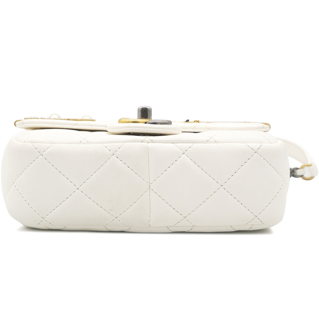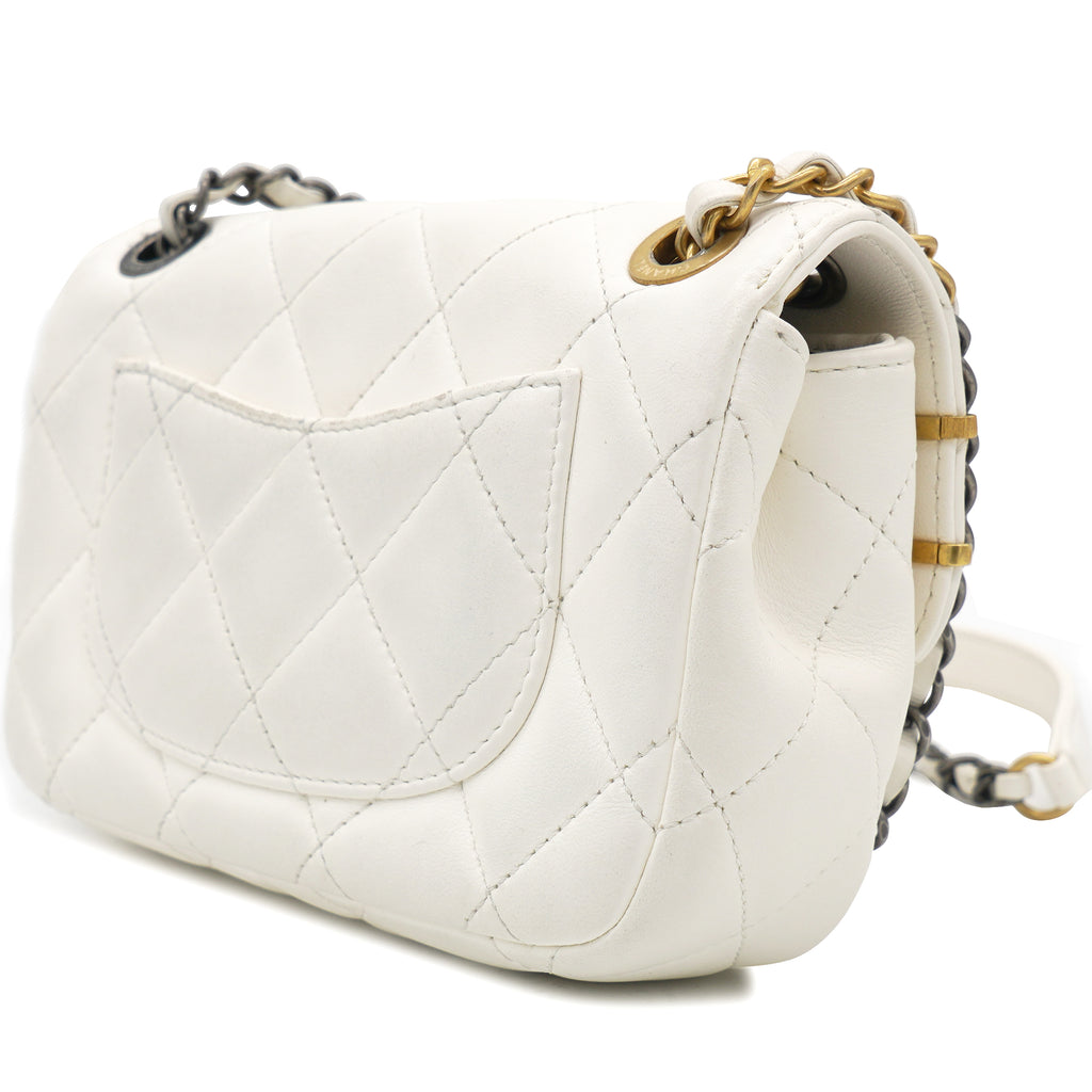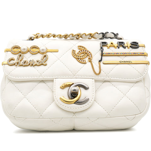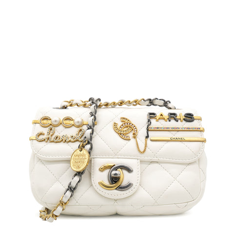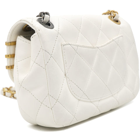 Lambskin Quilted Mini Coco Clips Flap White