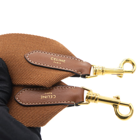 | Logo strap crafted from fabric and finished with two gold-tone hooks and smooth calfskin, to carry any of your Celine bag crossbody or shoulder. |