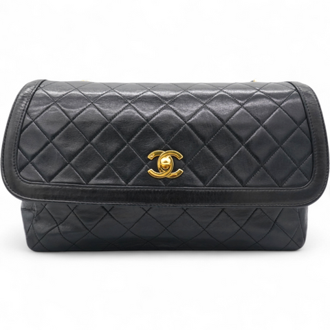 | The Chanel Matelasse Shoulder Bag is a stylish accessory crafted from black lambskin leather, featuring gold hardware. A practical choice for everyday use. It is categorized as a women's shoulder bag and is noted for its classic design. |