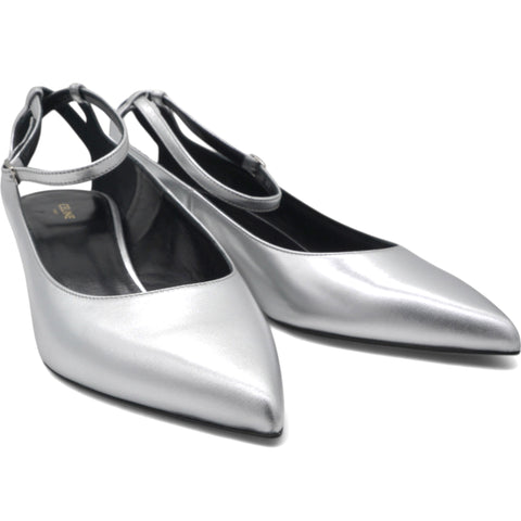 Metalized Leather Ope Back Sandals Silvery Size 38