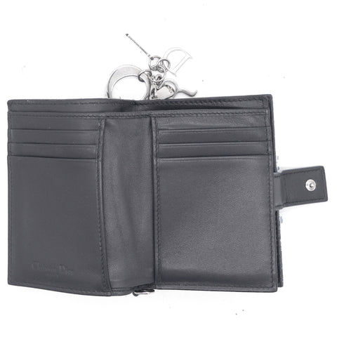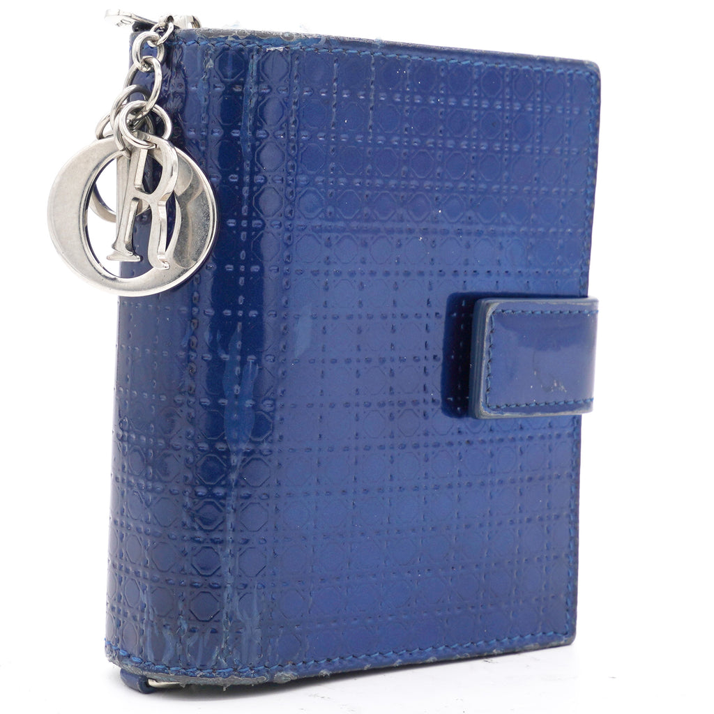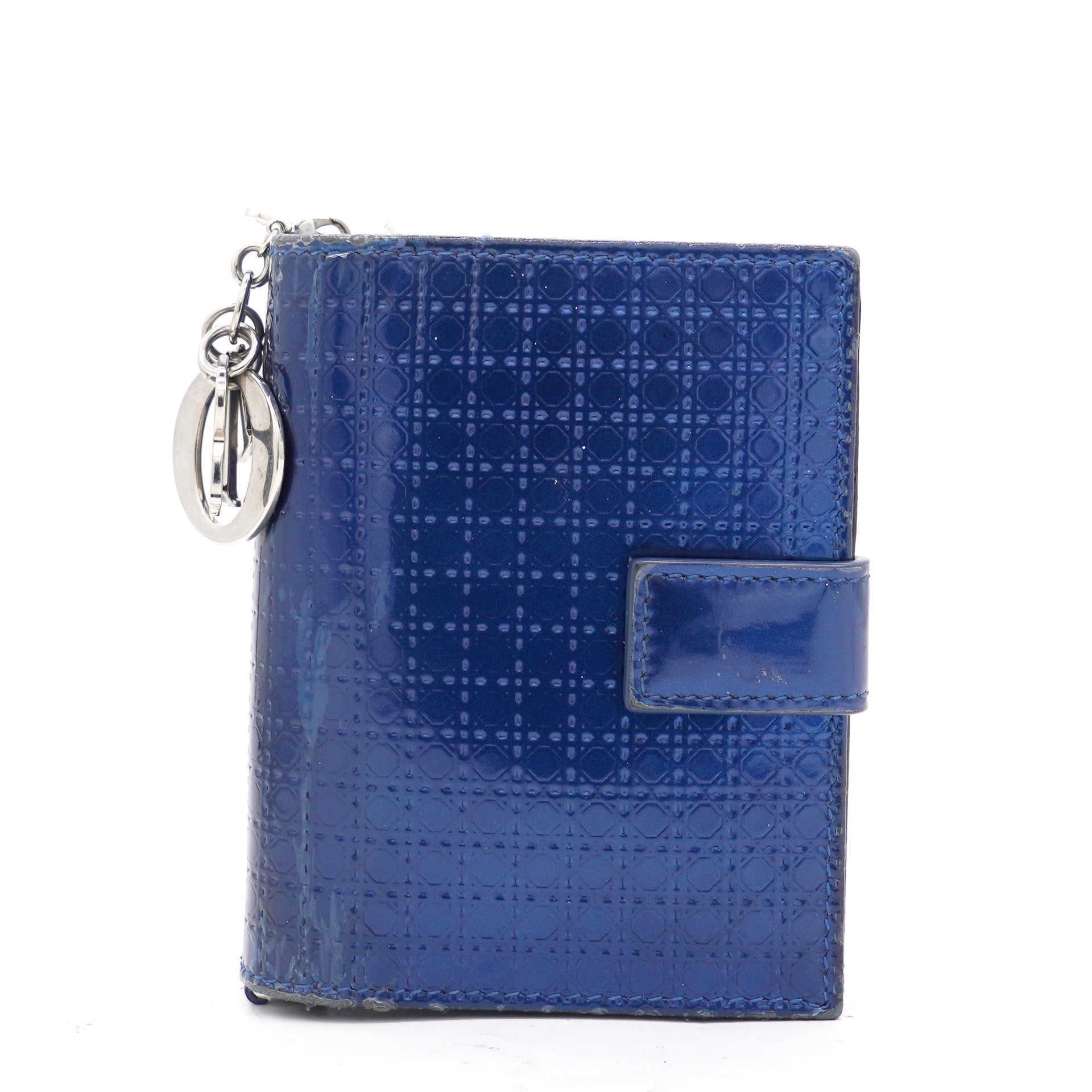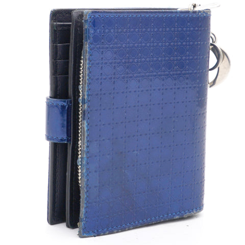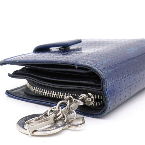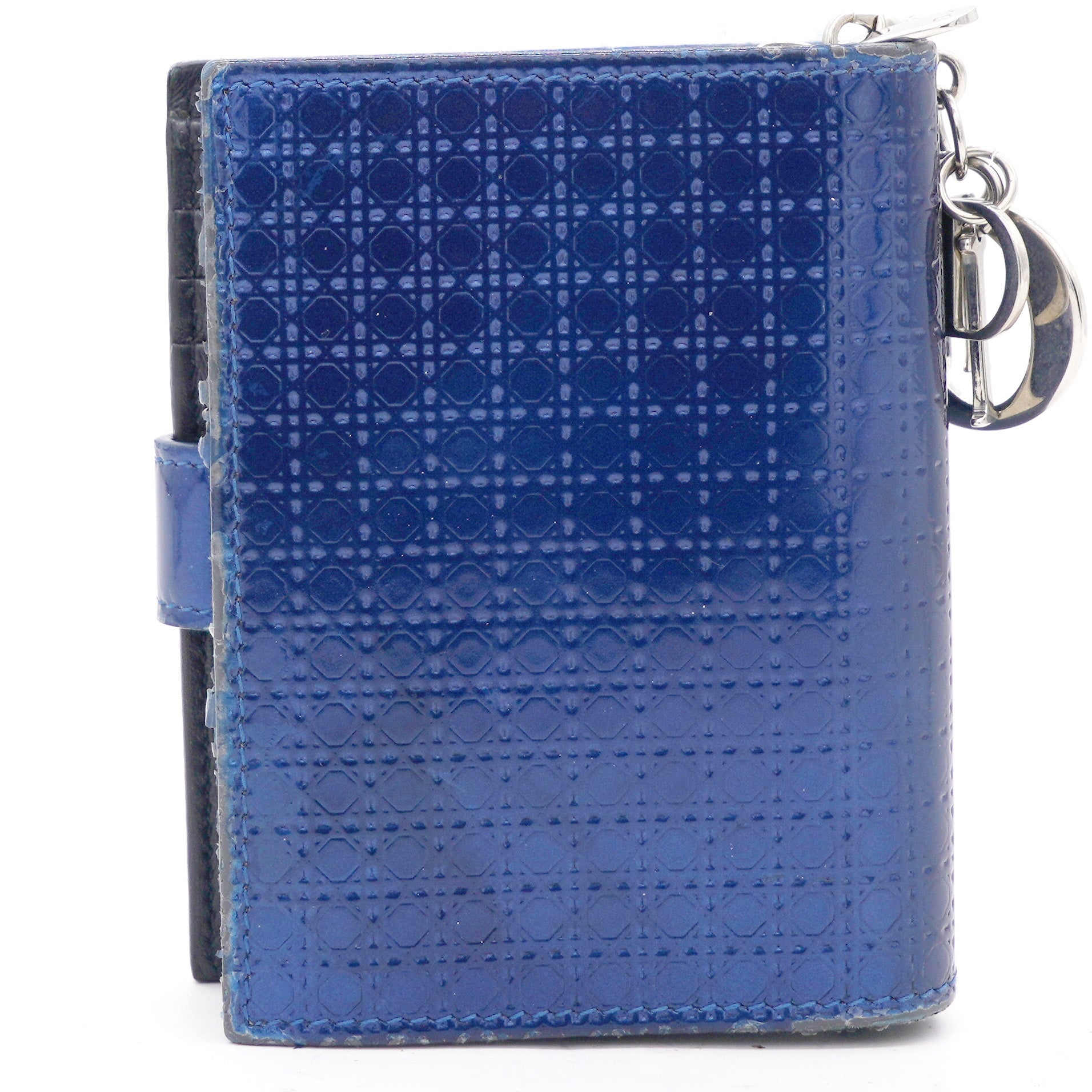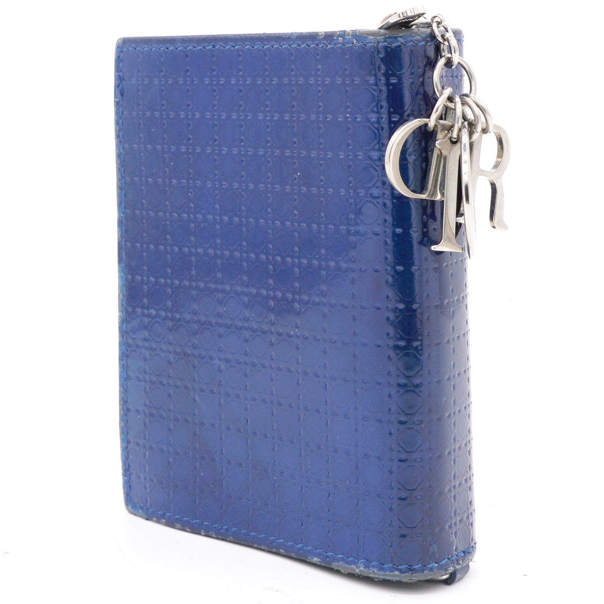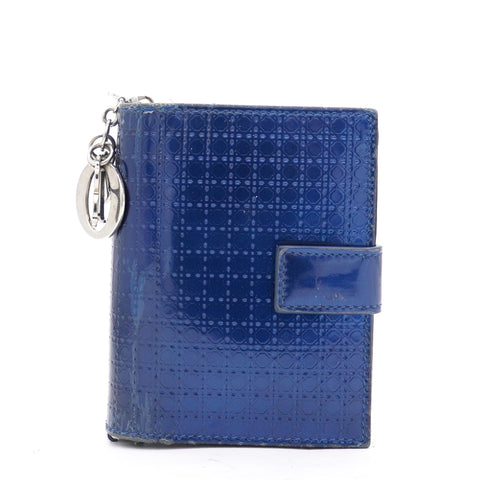 Metallic Blue Micro Cannage Leather Lady Dior Compact Wallet