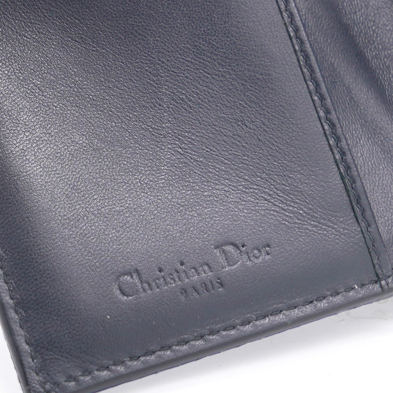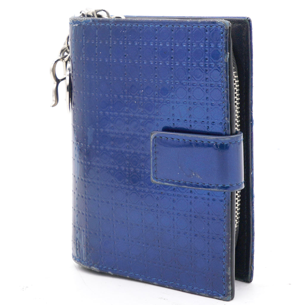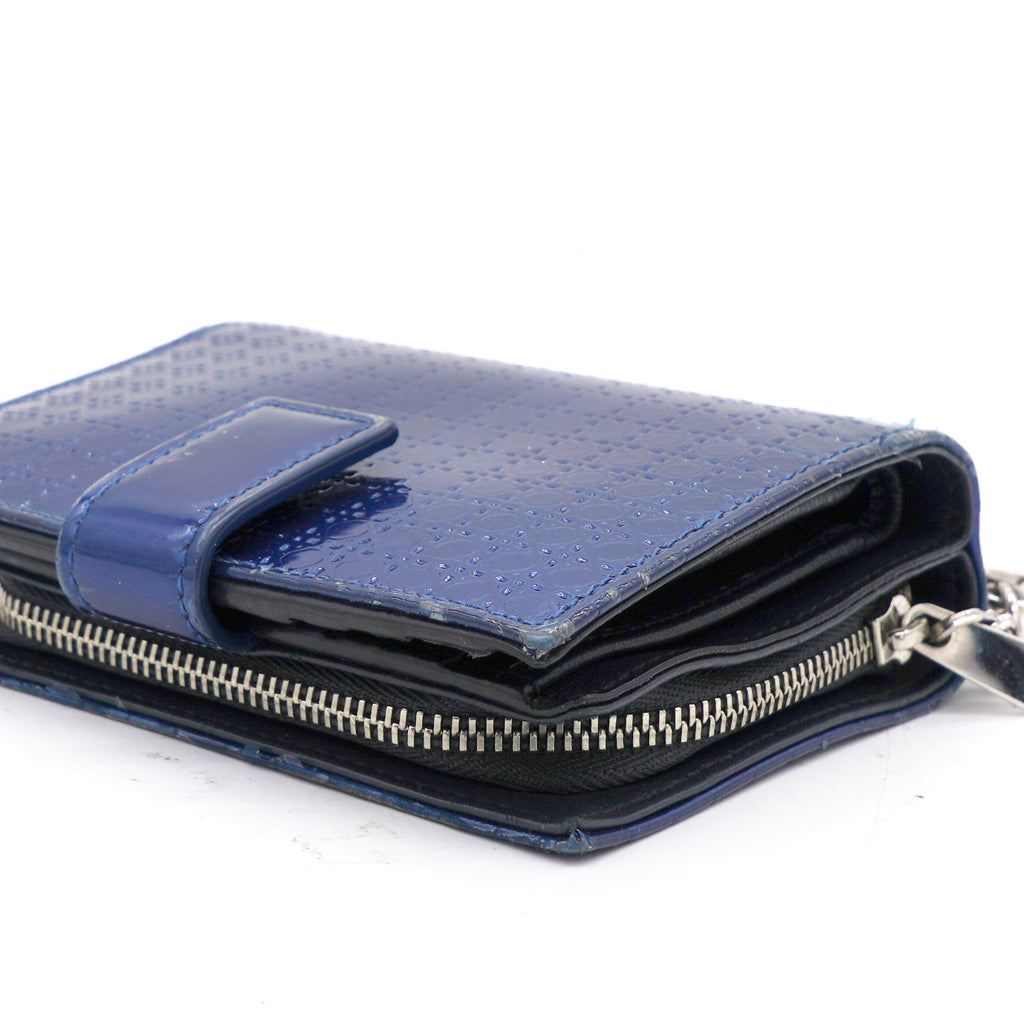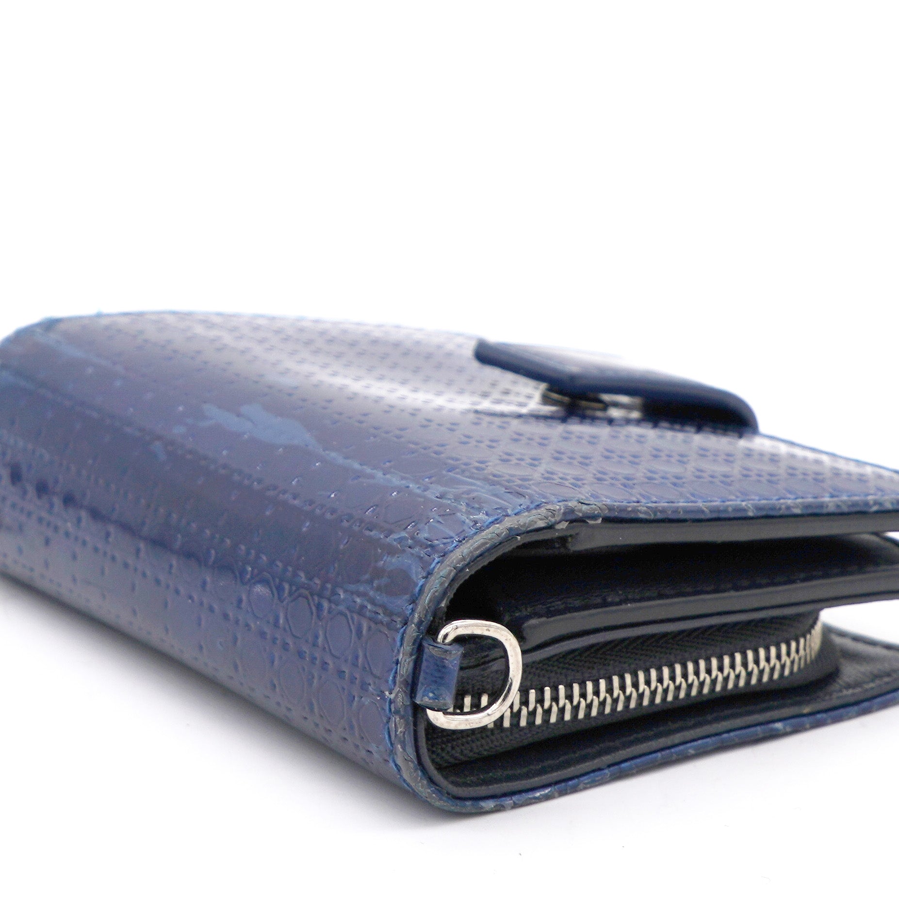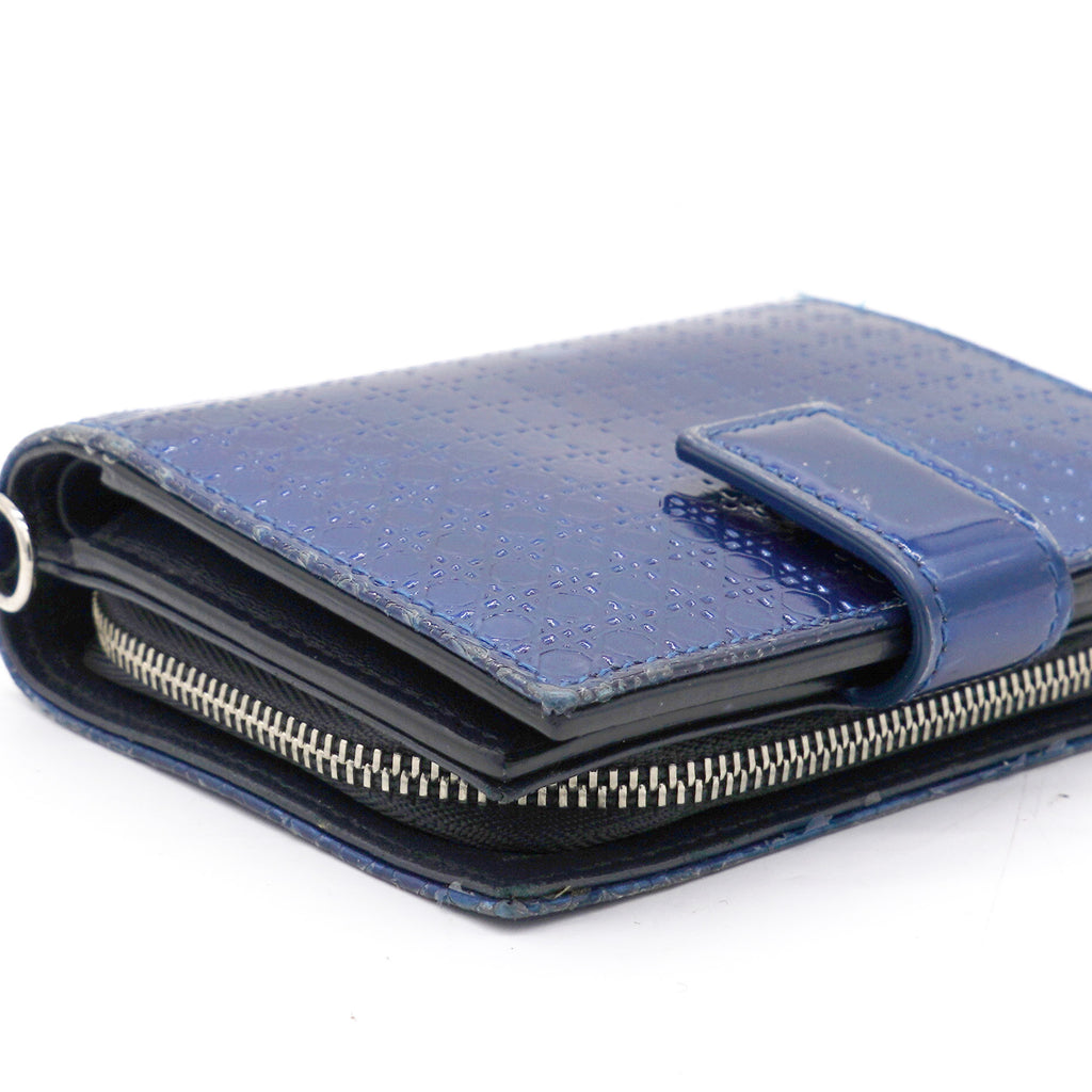 Metallic Blue Micro Cannage Leather Lady Dior Compact Wallet